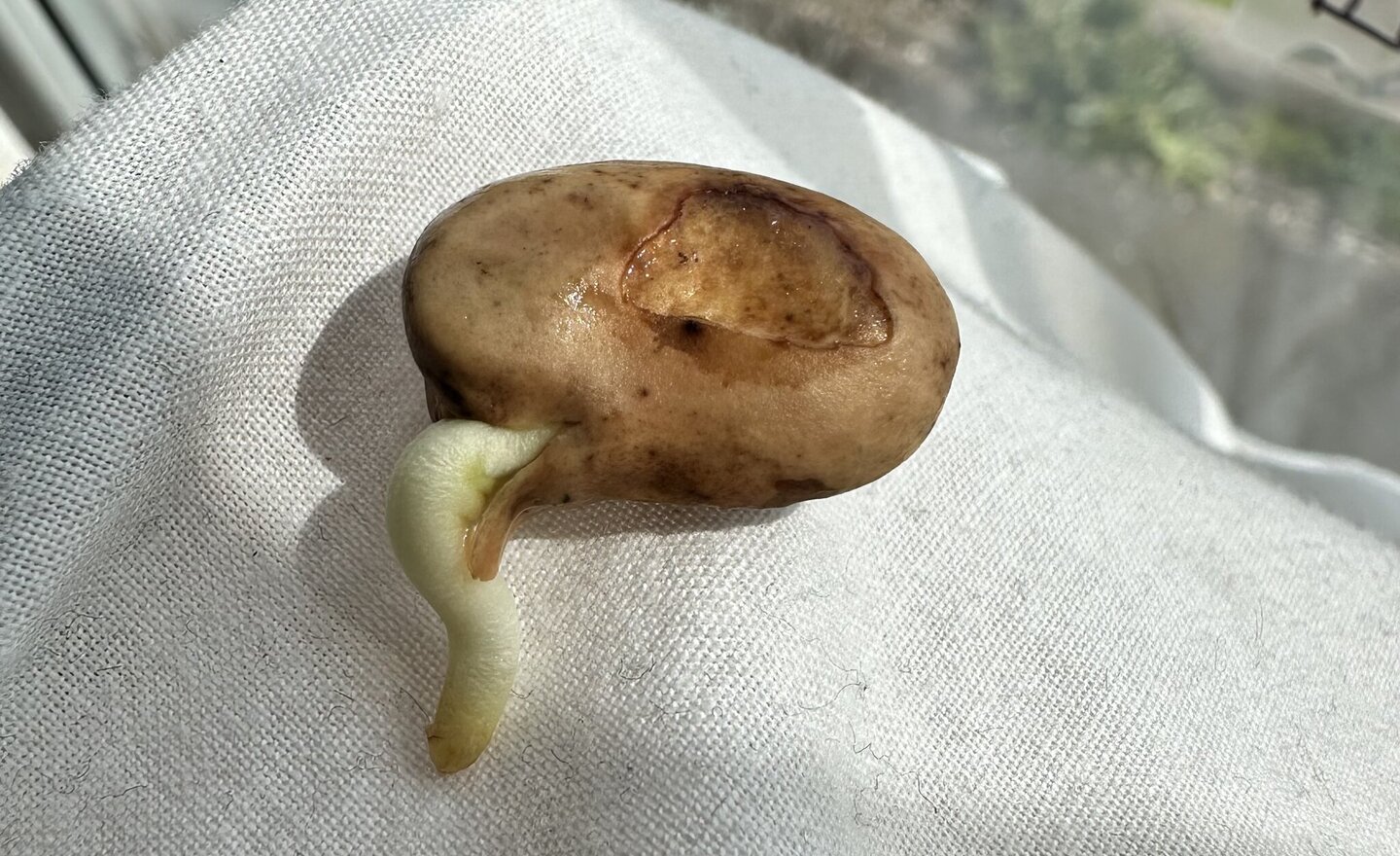 This week the children have started a science experiment to see if they were right in their predictions about what a plant needs to be able to grow. They put two Broad Bean seeds into a bag with water and kitchen roll and then I stuck them into the window. Separately, we have denied one seed water…