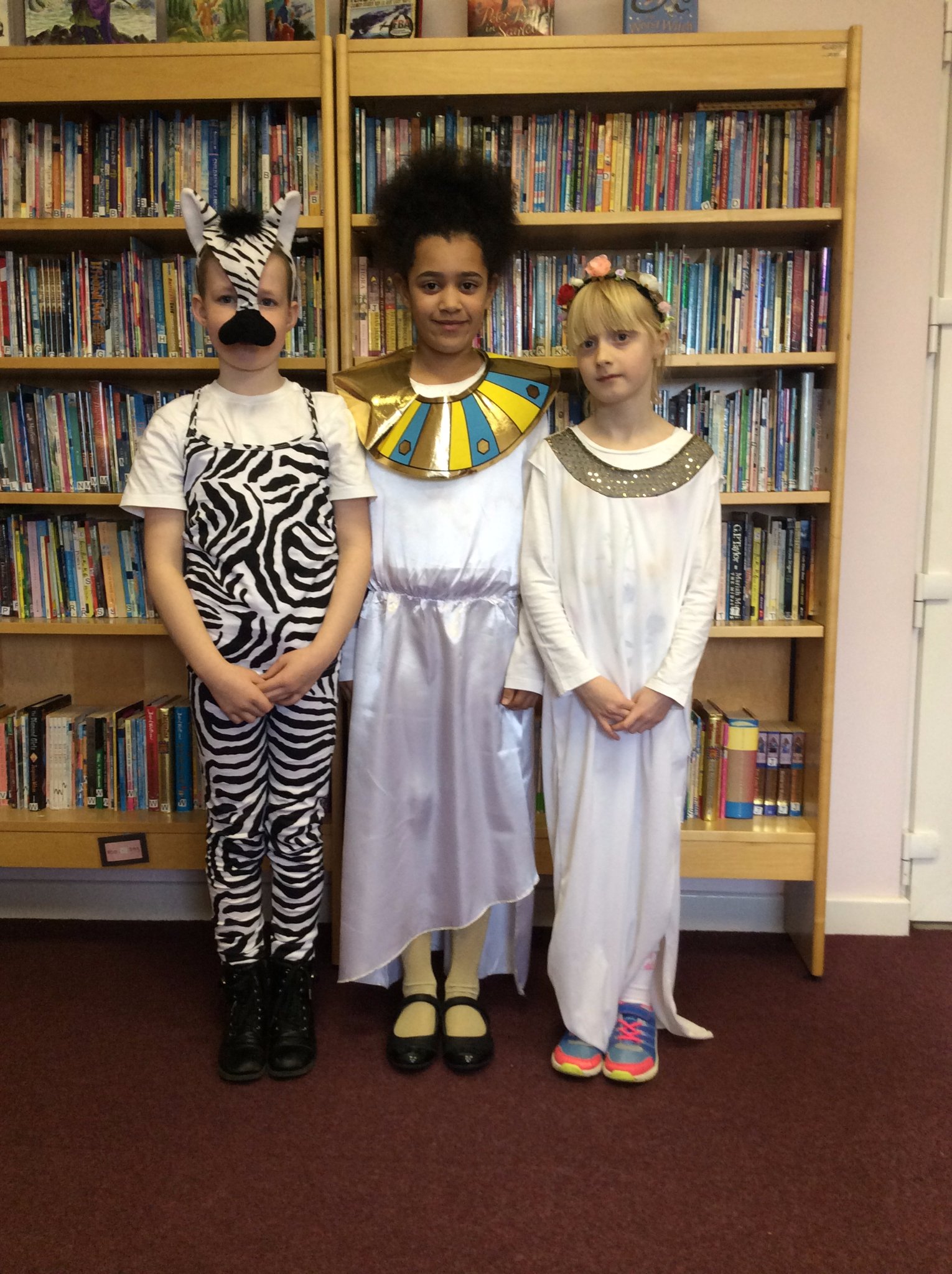 Zara came as a zebra from Noah's Ark. Keira came as the Egyptian princess who found and looked after the baby Moses. Freya came as Eve.