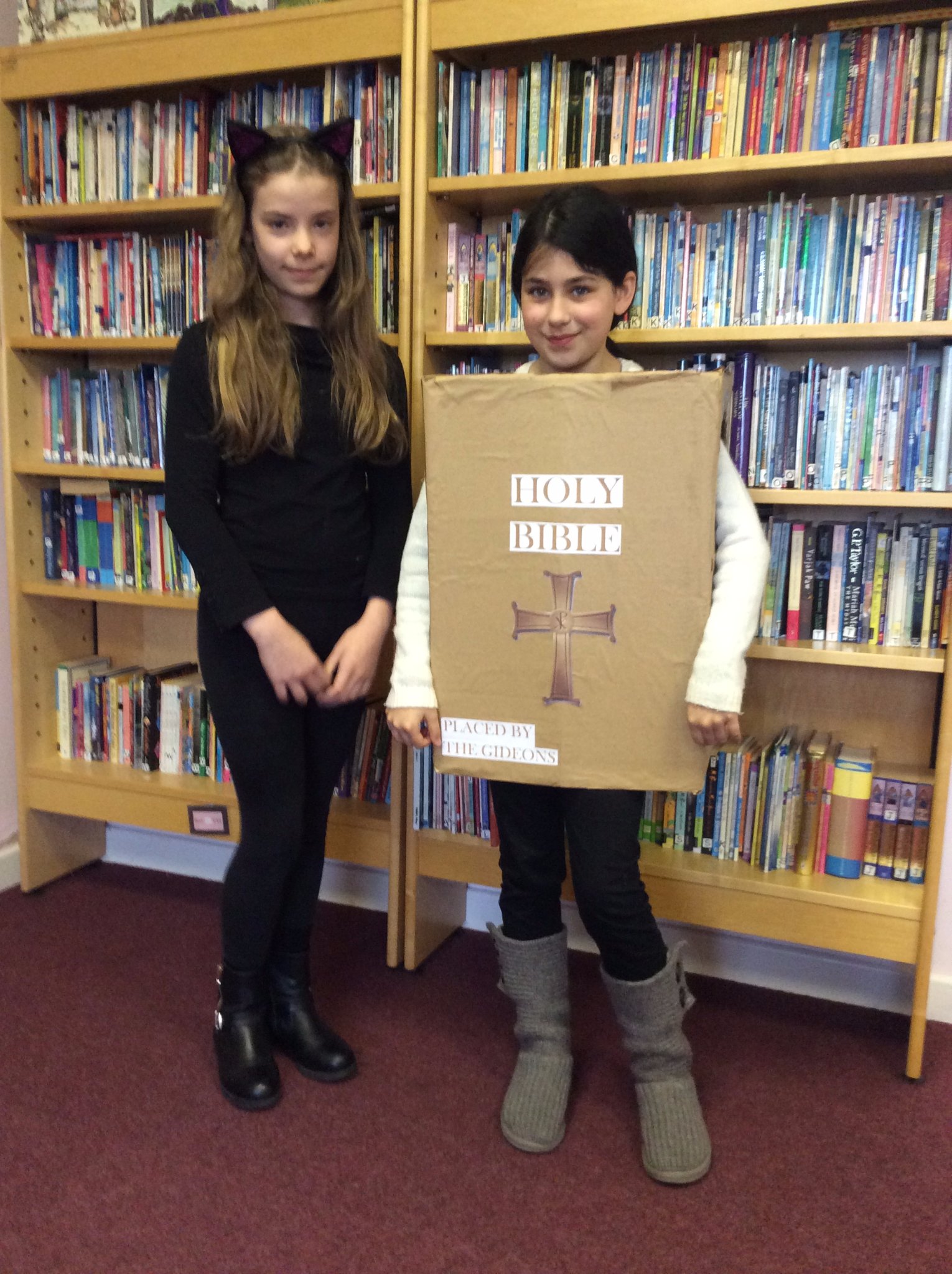 3 March 2016 Upper School (KS2) Lucy came as a cat from Noah's Ark and Anya creatively came dressed as The Bible!