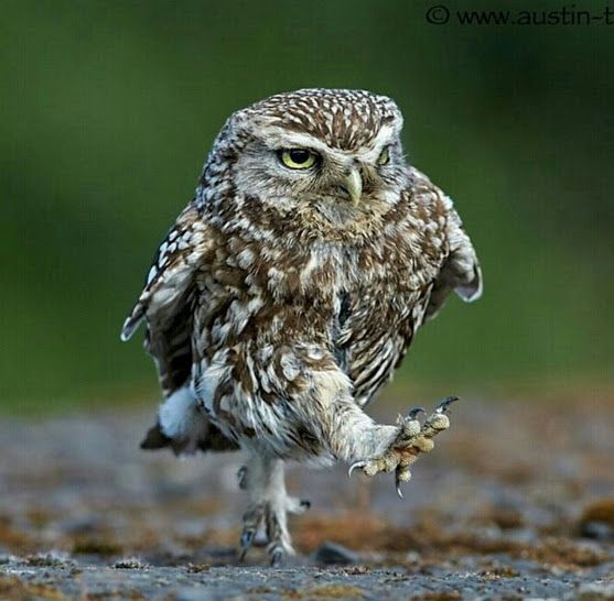 The Little Owl bobs its head up and down when it is alarmed (frightened).