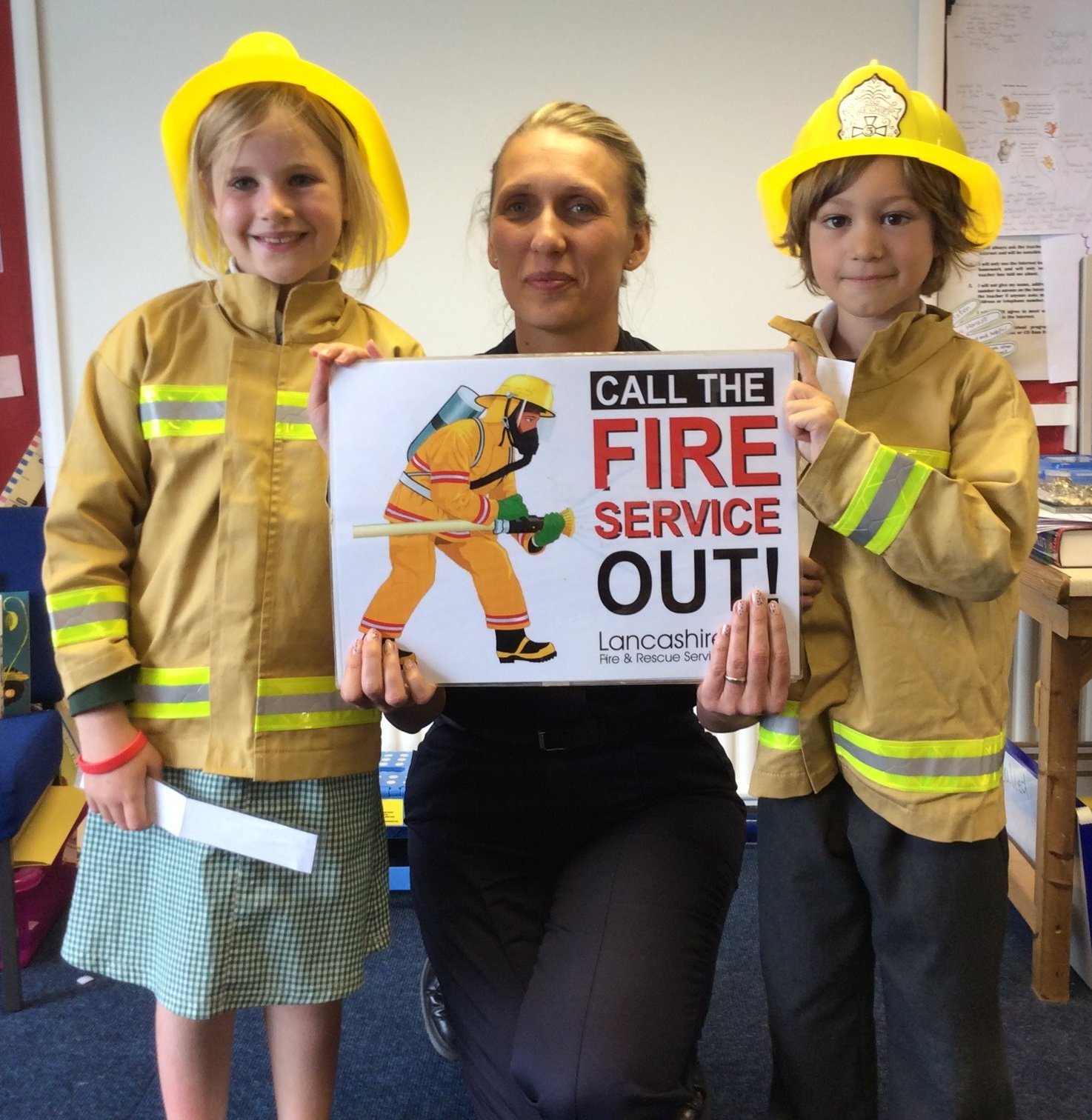 Today Magda from the Lancashire Fire and Rescue Service came to visit us. First of all we talked about smoke alarms, Theo explained what a smoke alarm was and what it did extremely well to Magda and the class. Spencer and Sofia told the class why the best place for the smoke alarm is on the ceiling. They explained that smoke rises up so it will reach the alarm faster if the alarm is on the ceiling. We learnt that smoke is the most dangerous thing in a fire.