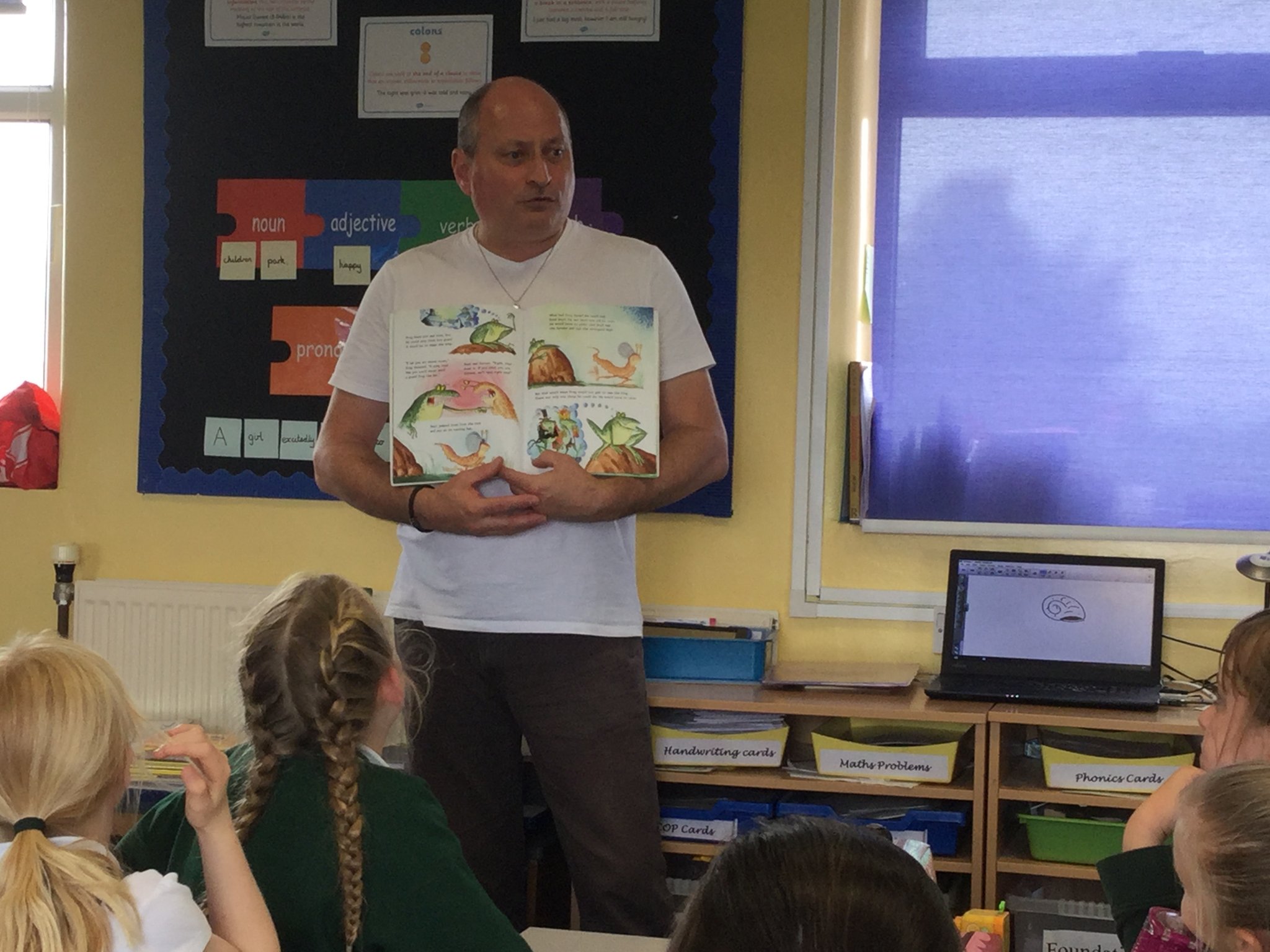 On Monday, we were lucky enough to have a visit from Damian Harvey, a children's author who has written over 80 books. He read us some of his fantastic books and lead a writing workshop during which we worked collaboratively to create a character and setting for a story.