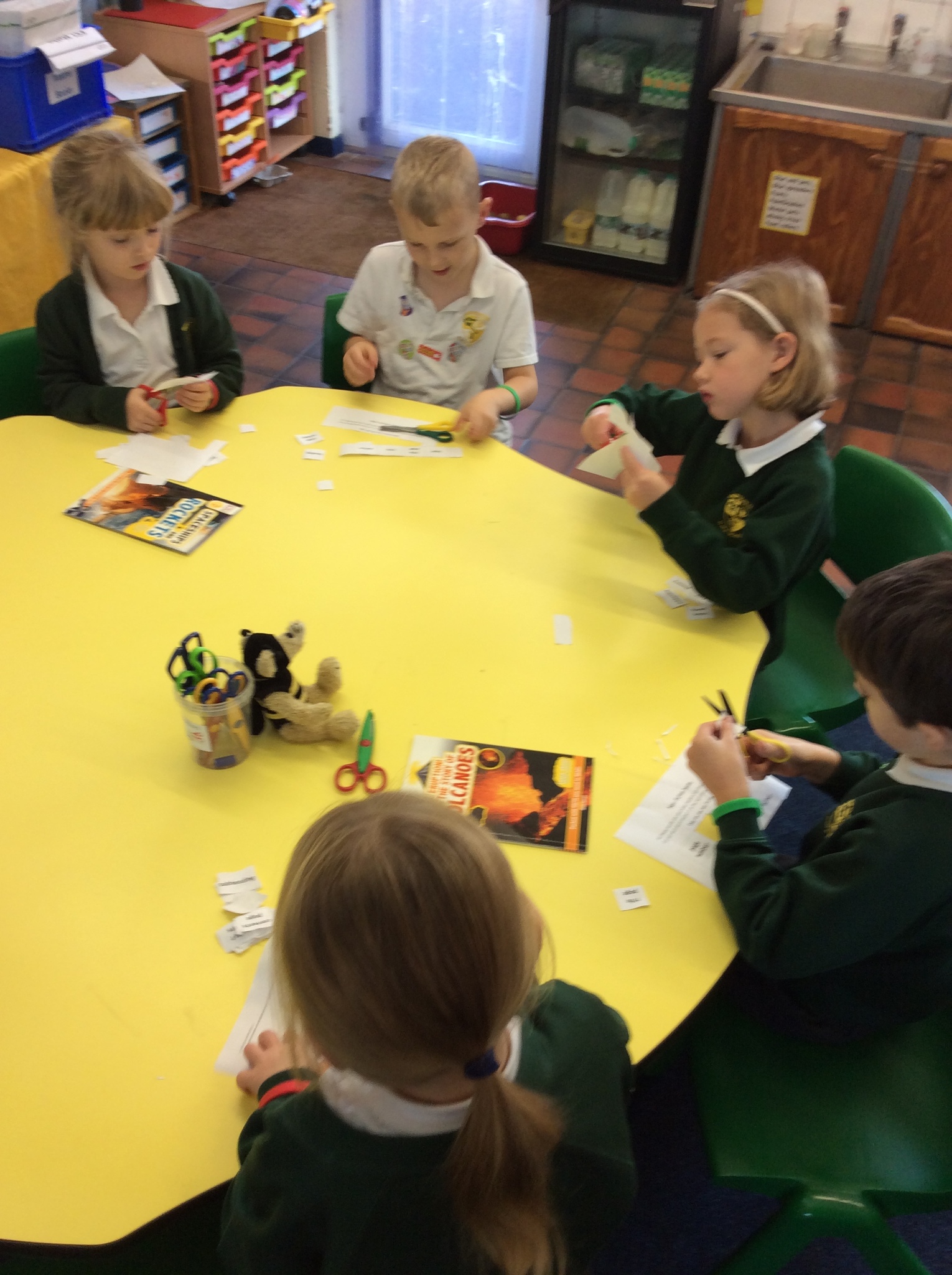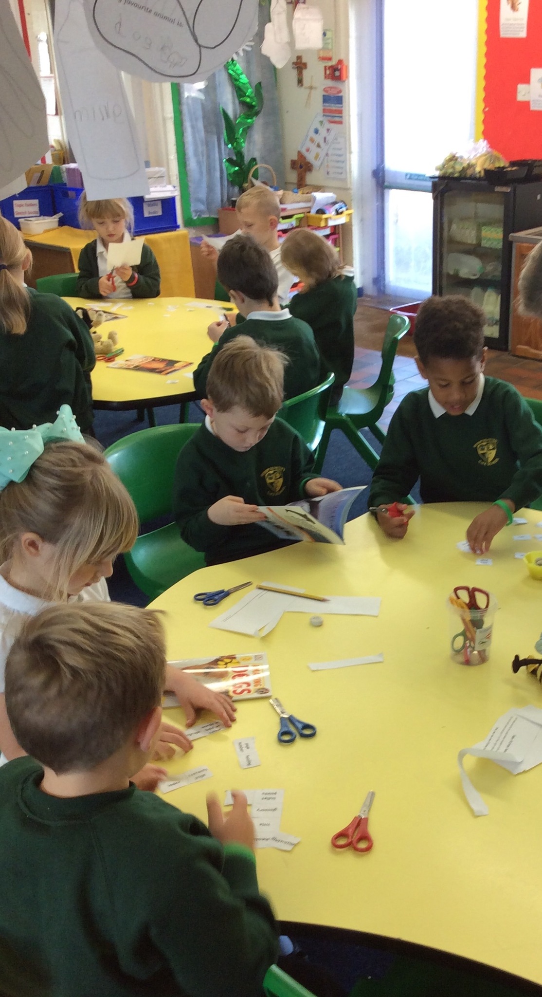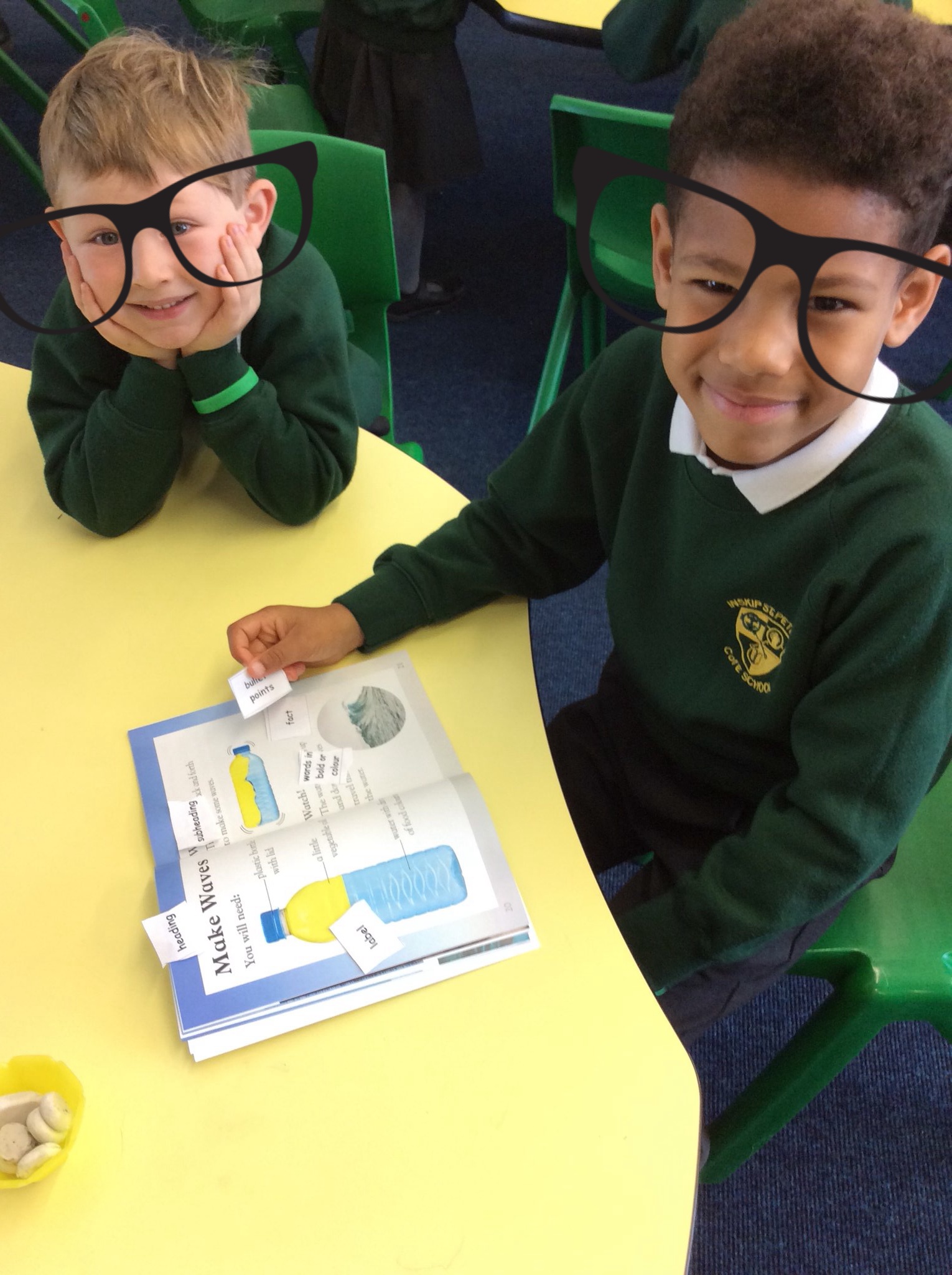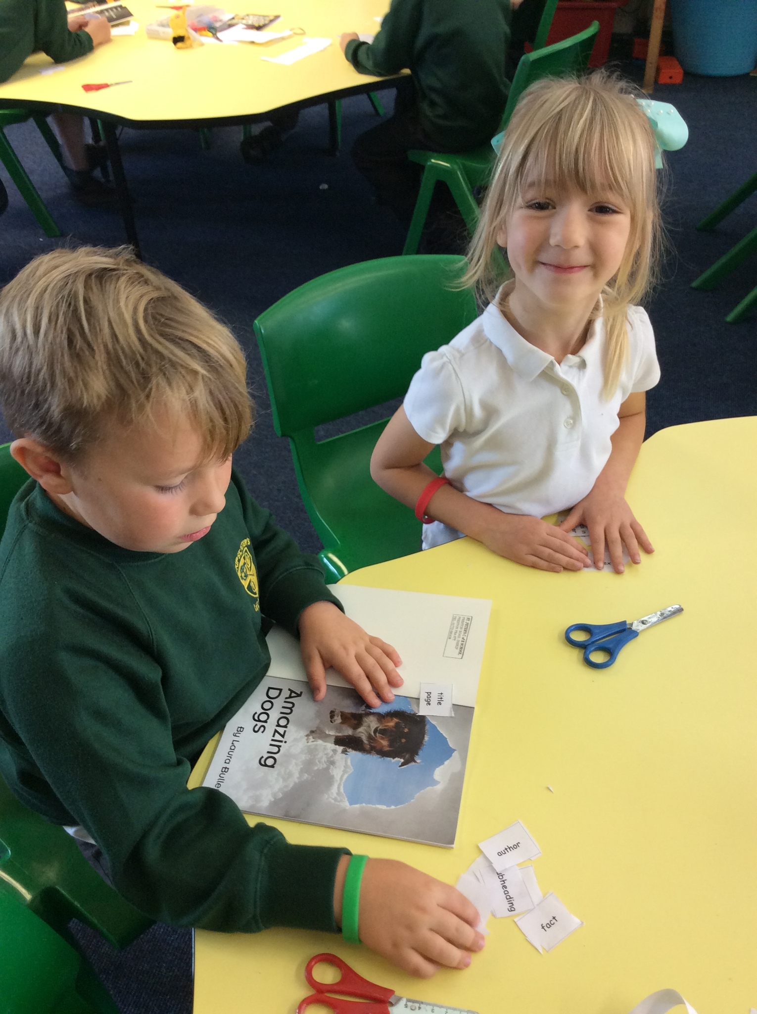 Year 1 and 2 children have been great co-operative 'Busy Bee' learners working in pairs to find features of non-fiction texts in books. They did this to help them see and learn how to set out information ready for when they write the facts they have learnt about hedgehogs.