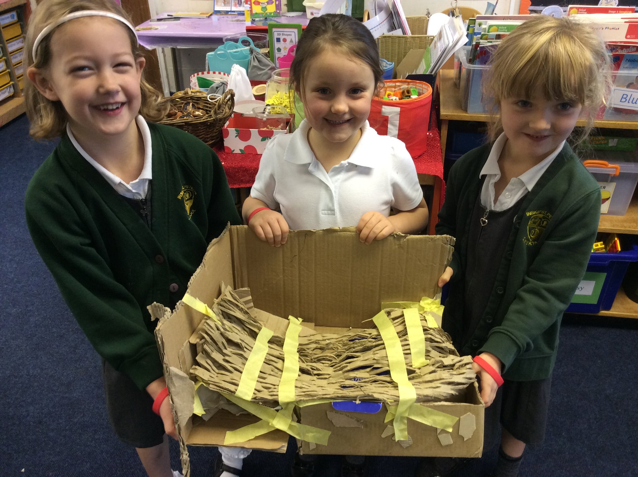 Sian,Bethan and Claire have made a cosy, warm home for a hedgehog. They have placed it under the hedge for a lucky hedgehog to find! Great busy bee learners.