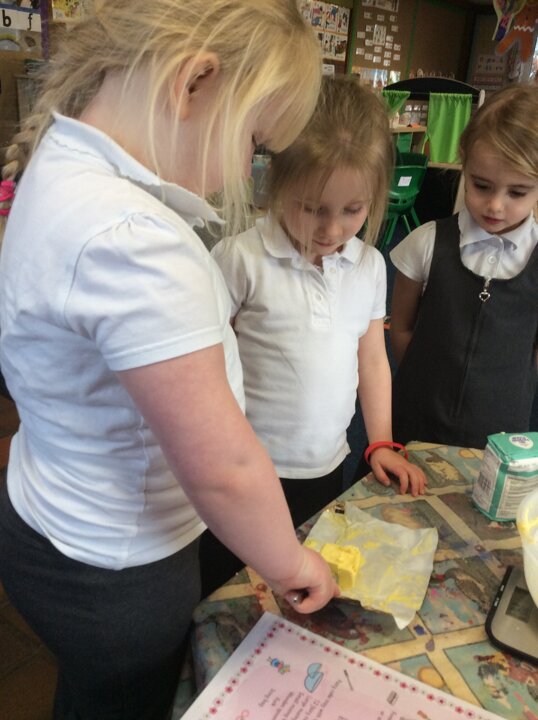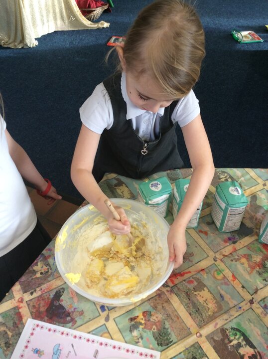 Something unusual happened the other day in the EYFS classroom, the children had a visit from an upset Little Red Riding Hood who hadn't enough cakes to take to her poorly grandma. She had been skipping across our field to get to her Grandma’s cottage and they must have fallen out of her basket as she swung it around. So the children decided to make some cakes for her.