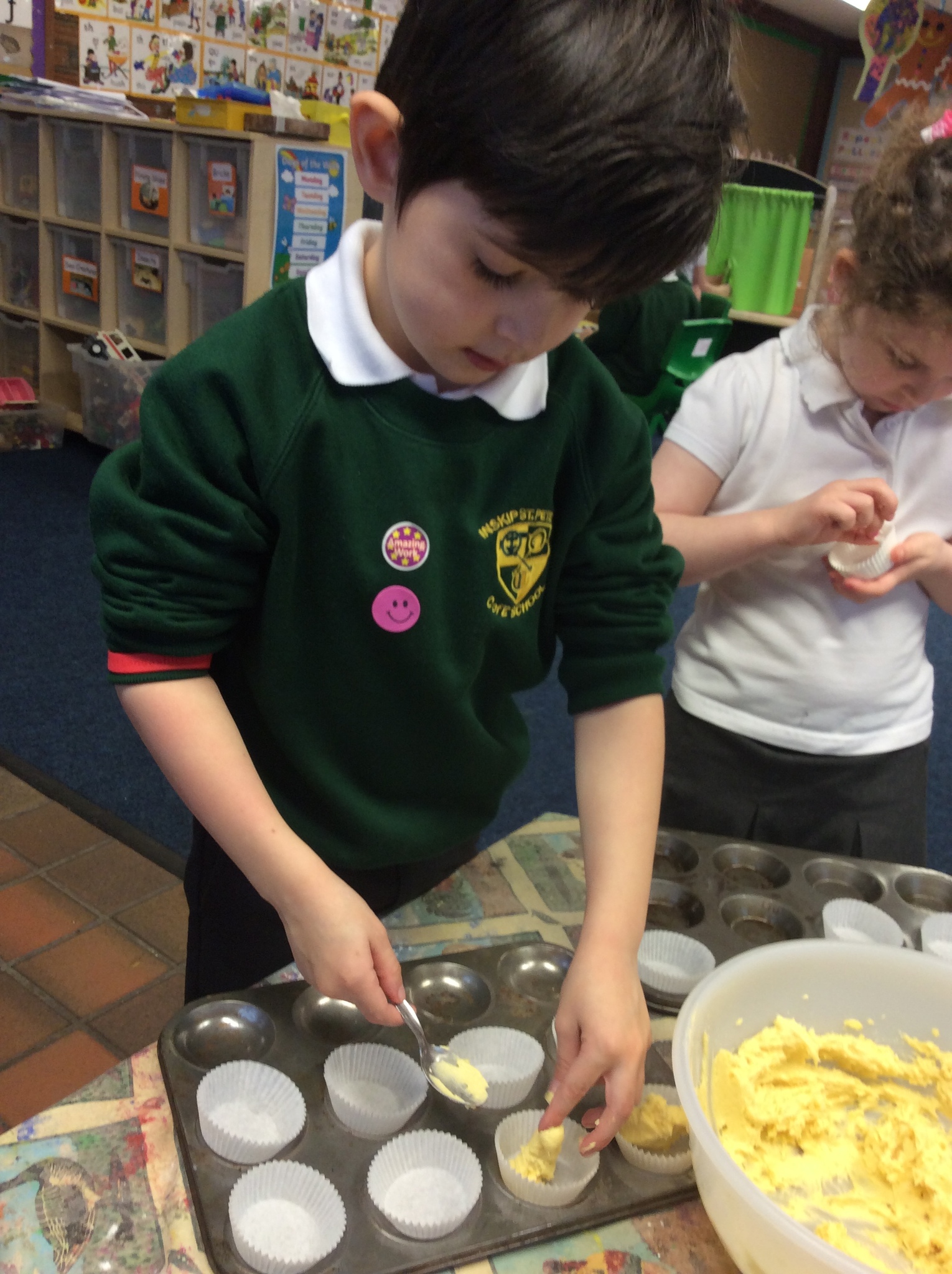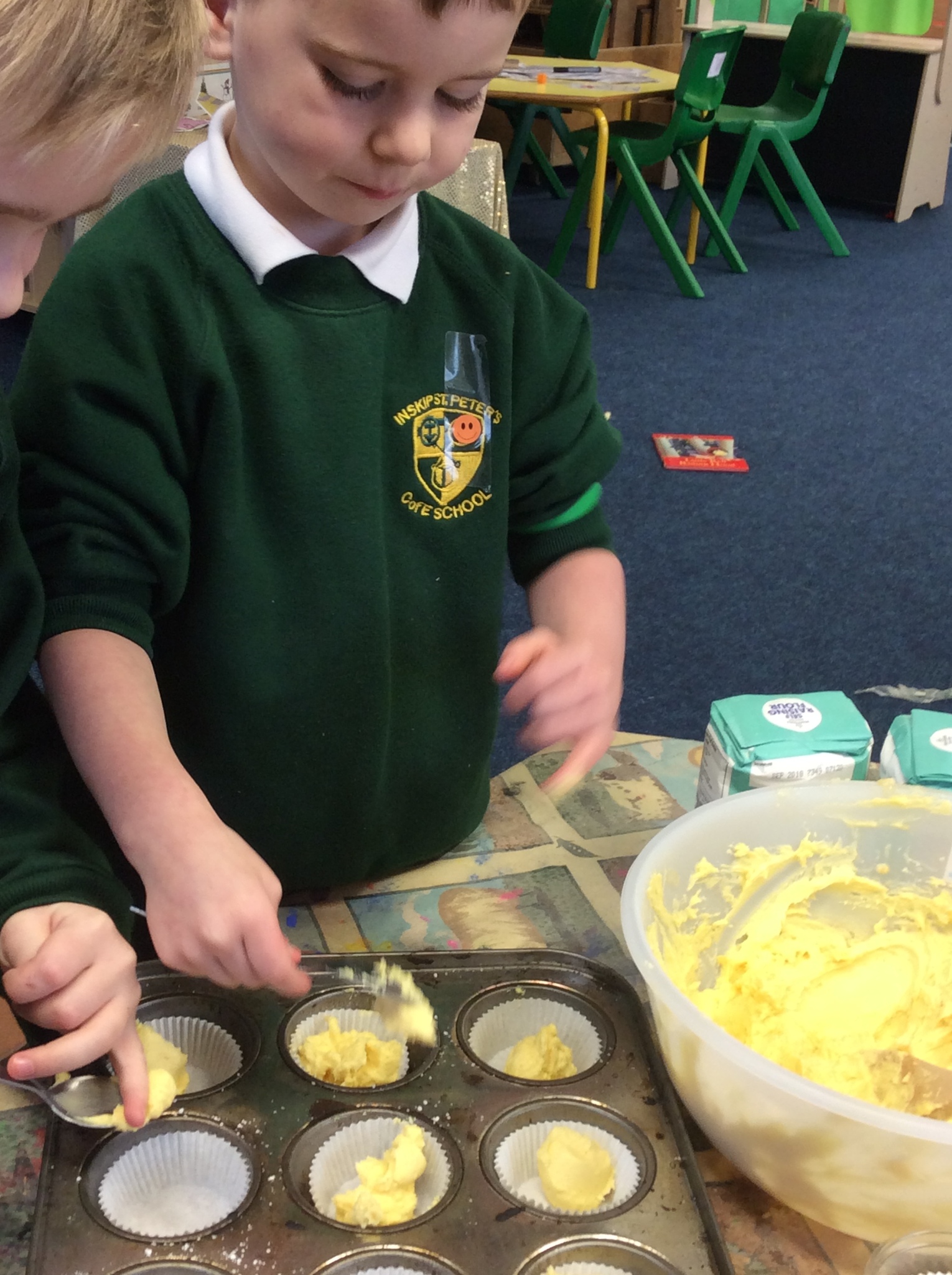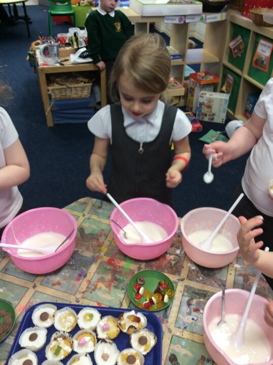 Today they have had lots of fun learning and deepening their understanding with lots of real-life maths: counting, estimating, weighing and measuring as they baked some cakes.