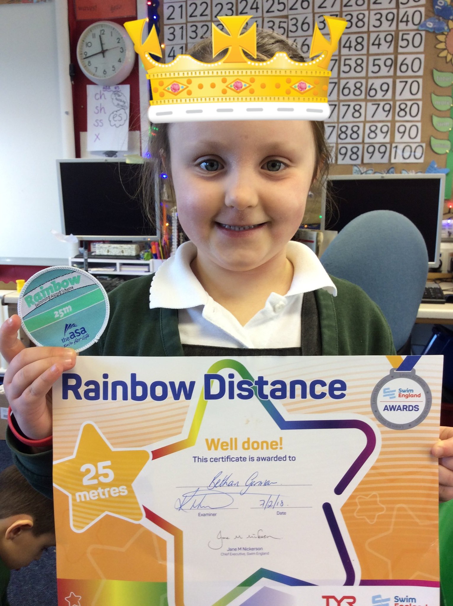 9 February 2018 Penny Kemp Lower School (KS1) Well done Bethan, what a super swimmer you are for swimming 25m backstroke. We are very proud of you.