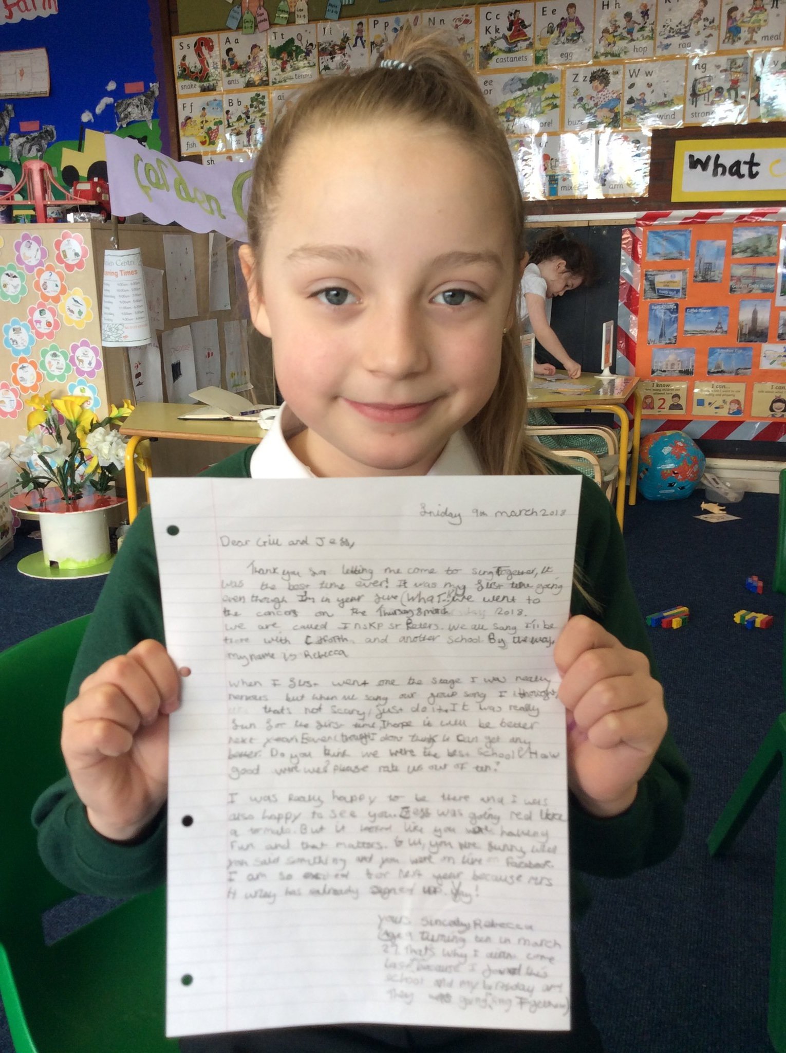 9 March 2018 Penny Kemp Upper School (KS2) I am really impressed with Rebecca’s writing she has written an excellent letter to the organisers of Sing Together. Thank you for coming to read it to me Rebecca. Mrs Kemp