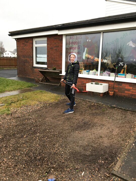 Thank you also to my son, Jasper, who was a real super star working hard in the rain (it wasn't raining when we left home) with me. We recycled the old tricky trail posts and carried all our new woodchip to create a bark pit for outdoor learning for our EYFS children. We went home very wet, muddy, happy and excited to find out what the children think when they see their new improved outdoor learning space on Monday morning.