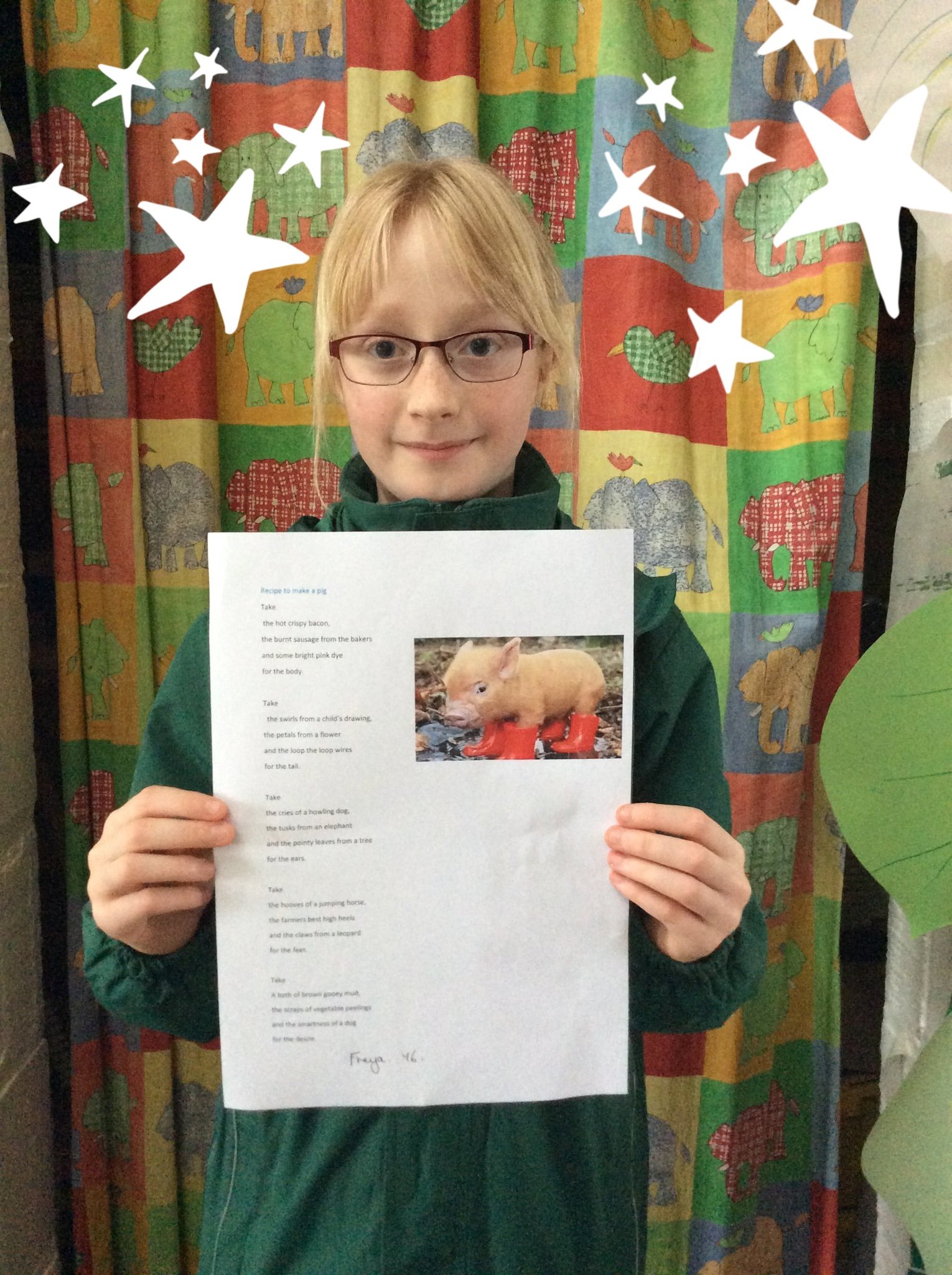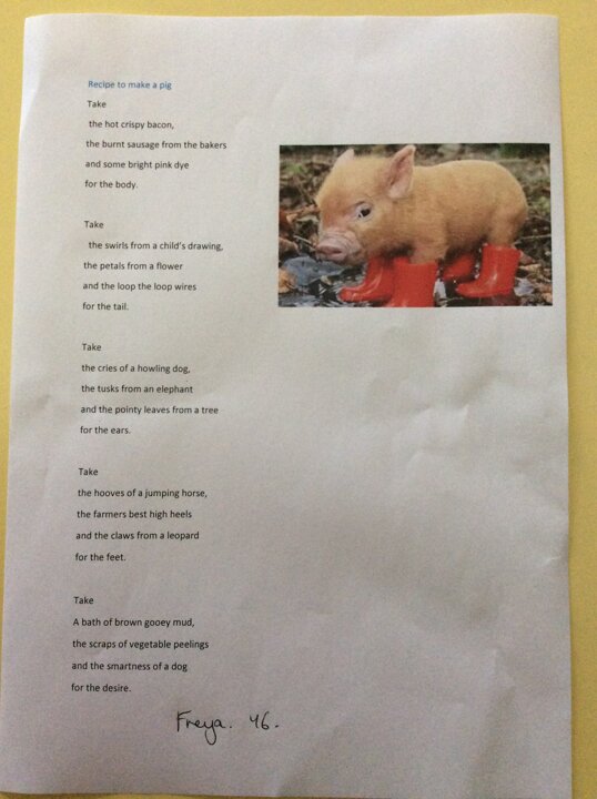 13 April 2018 Penny Kemp Upper School (KS2) Thank you for coming to show me your poem Freya, I think it is excellent! Mrs Kemp Freya’s poem