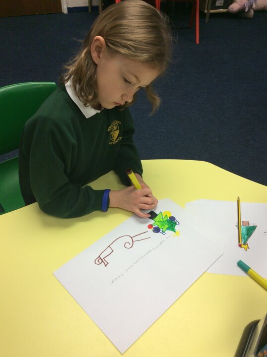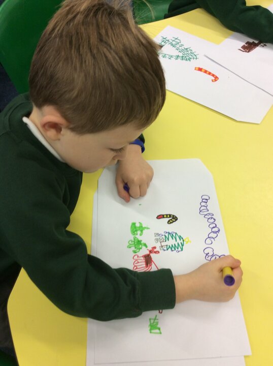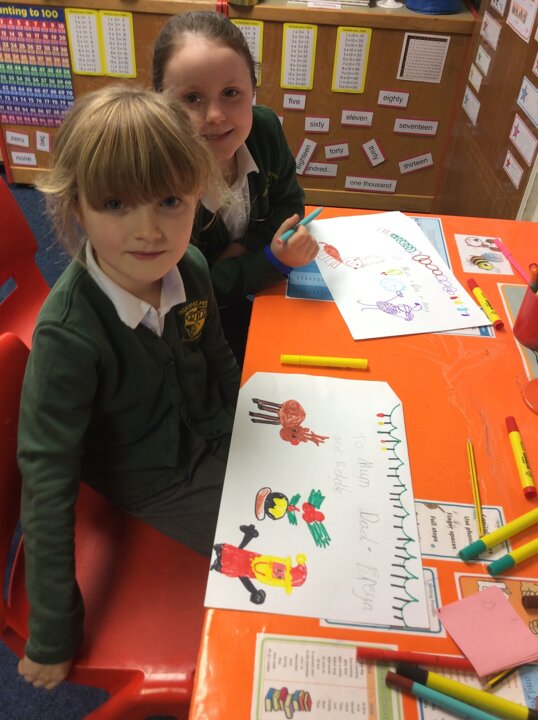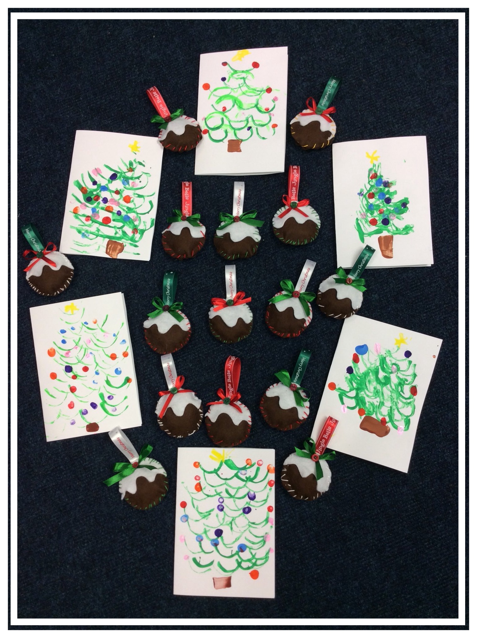 We have been busy making cards and tree decorations for our families. Year one and two children really enjoyed sewing which for most of them was a new skill to learn.