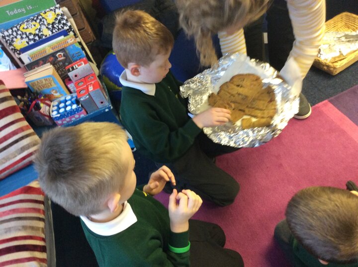On Friday morning we arrived to another surprise, a delicious surprise! Arthur left the children another letter and two enormous cookies he had baked for them to eat. The children are going to be working on how to teach Arthur to eat more healthily over the next few weeks as he has asked for their help.