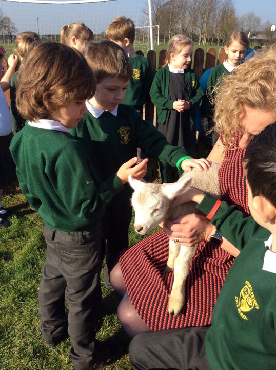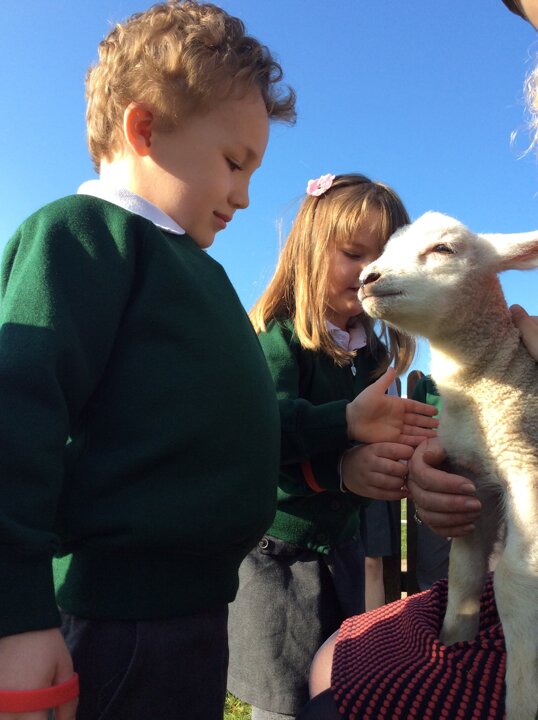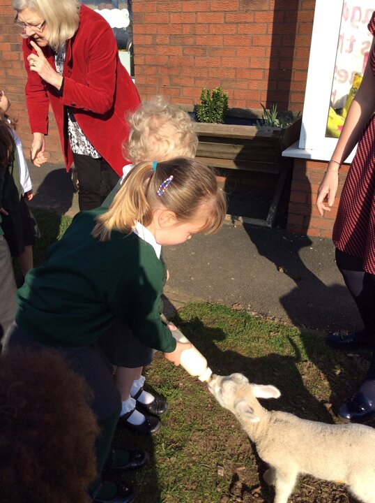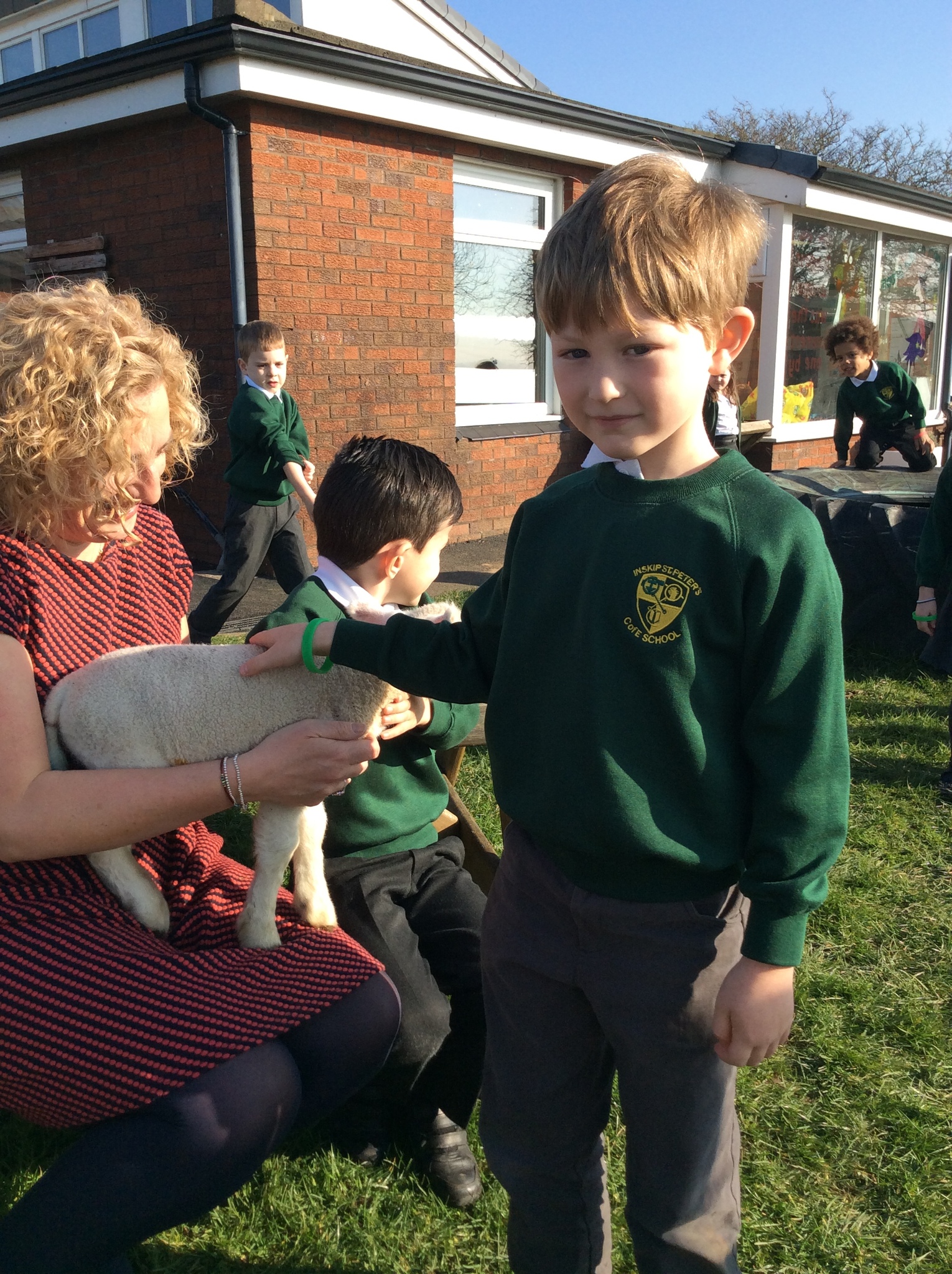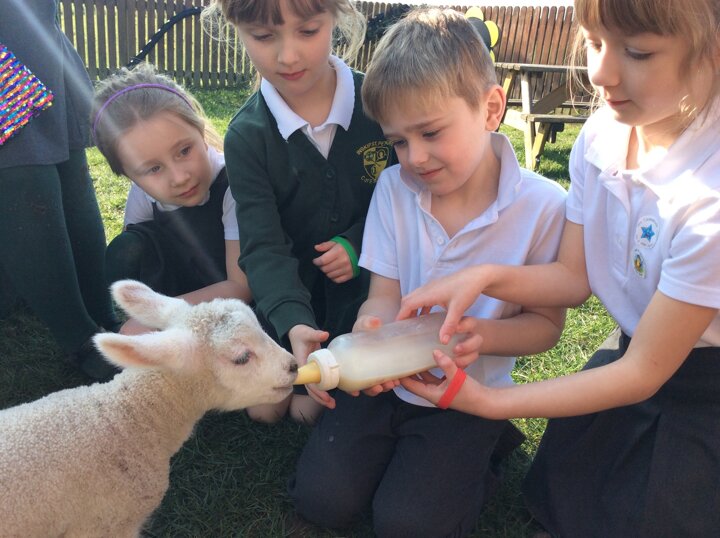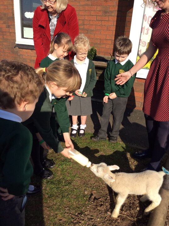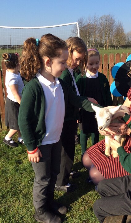 We had a visit from Leo’s pet lamb today, she is an very tame, healthy little 2 week old ewe. We really enjoyed stroking her, feeding her and learning about how to take care of her. Thank you very much to Leo, his mummy and all his family for letting us have Blue in school. We hope to have Blue back in school soon so that we can see how much she has grown.