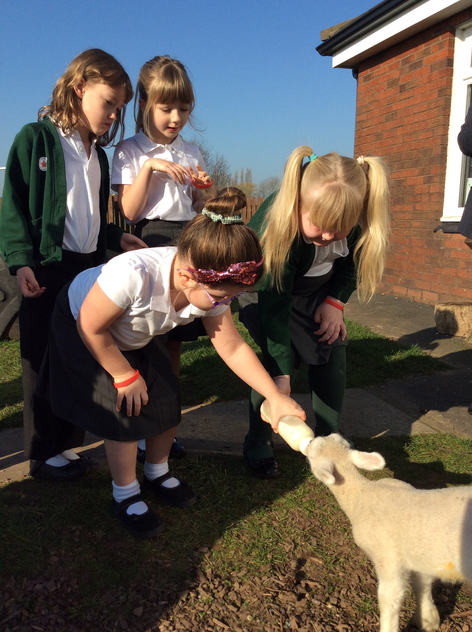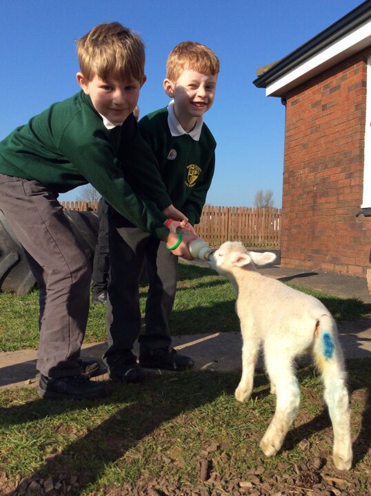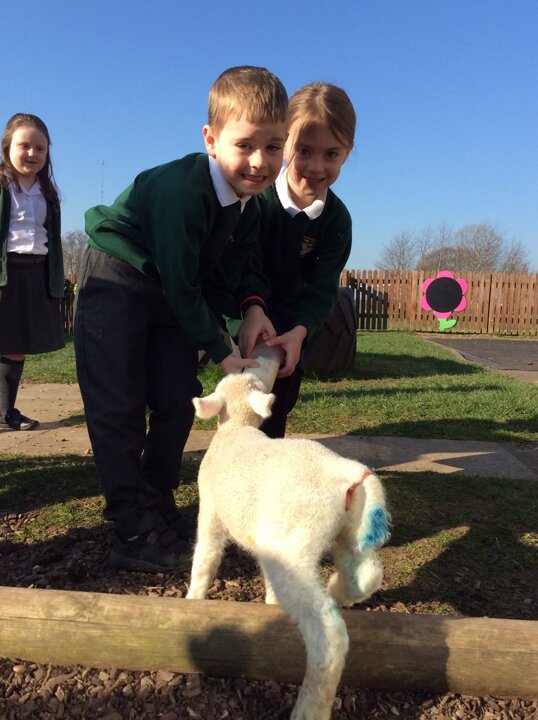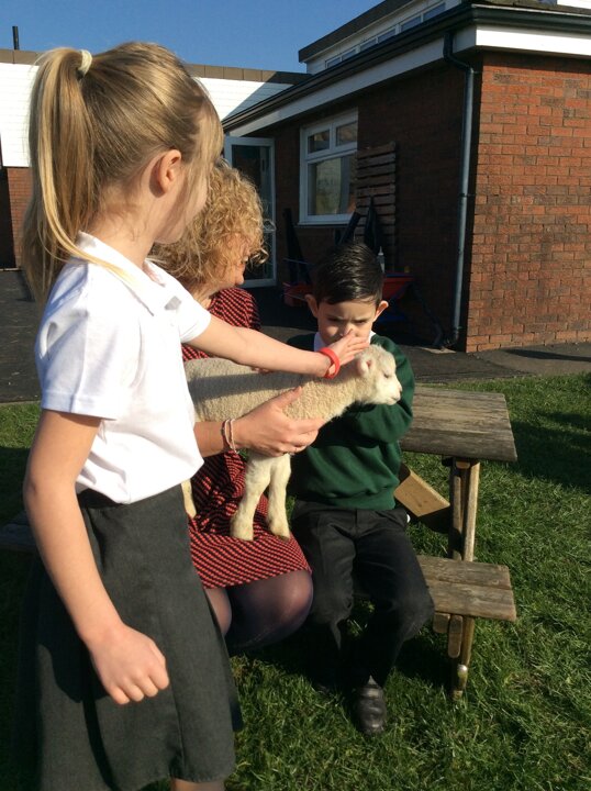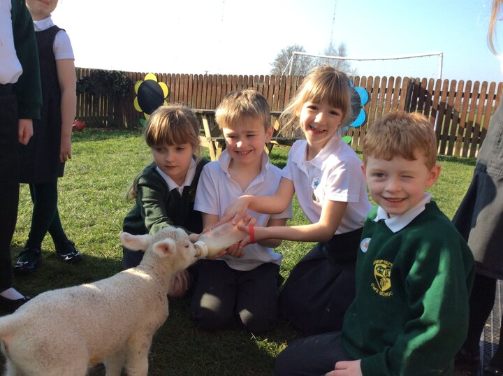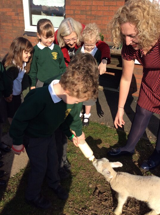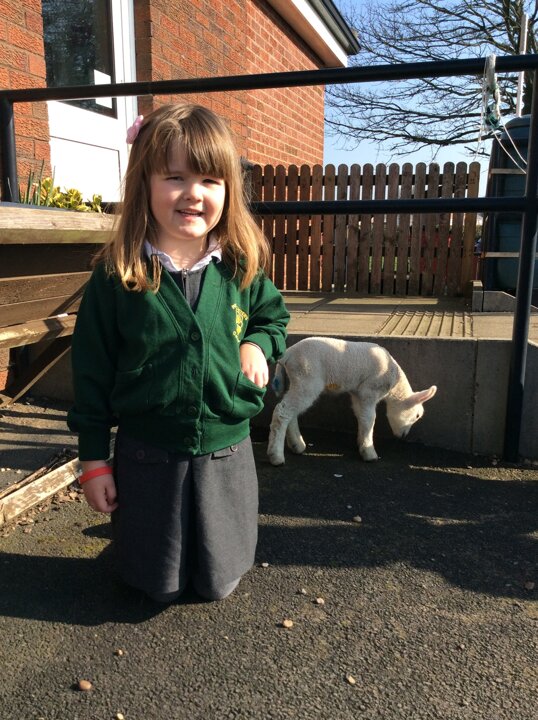 We had a visit from Leo’s pet lamb today, she is an very tame, healthy little 2 week old ewe. We really enjoyed stroking her, feeding her and learning about how to take care of her. Thank you very much to Leo, his mummy and all his family for letting us have Blue in school. We hope to have Blue back in school soon so that we can see how much she has grown.