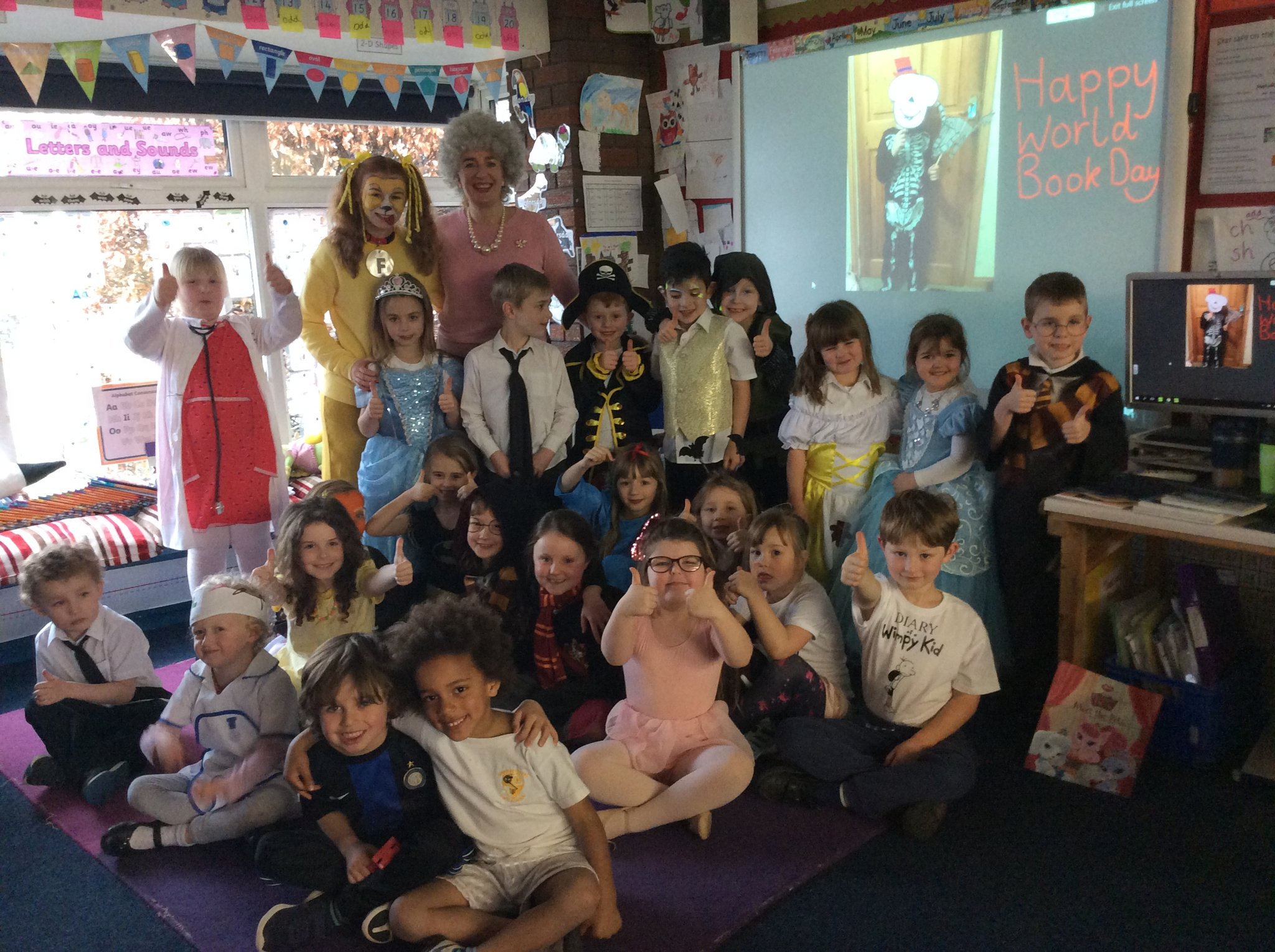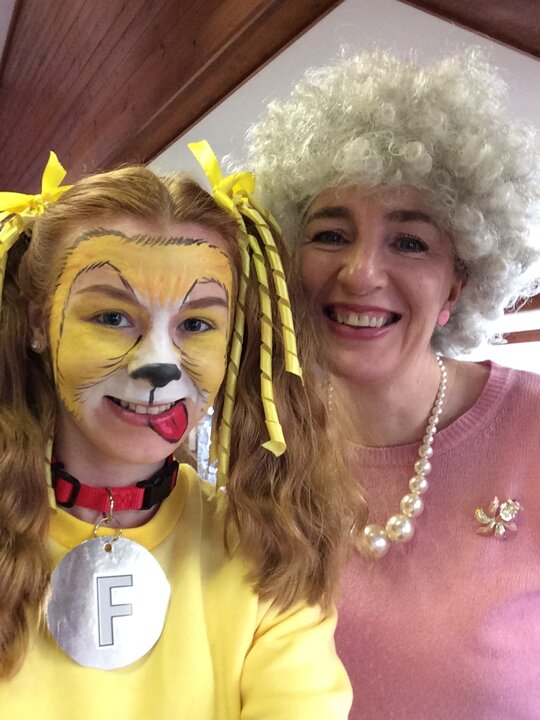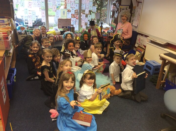 The staff and volunteers in Lower School dressed as different characters from the Biff, Chip and Kipper stories from the Oxford Reading Tree Scheme. I dressed up as Mrs May the teacher, Mrs Allen was Biff, Miss Haynes was a very well behaved Floppy and Mrs Cadwallader was Gran.