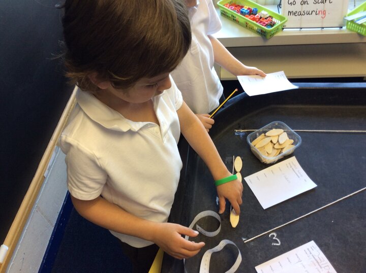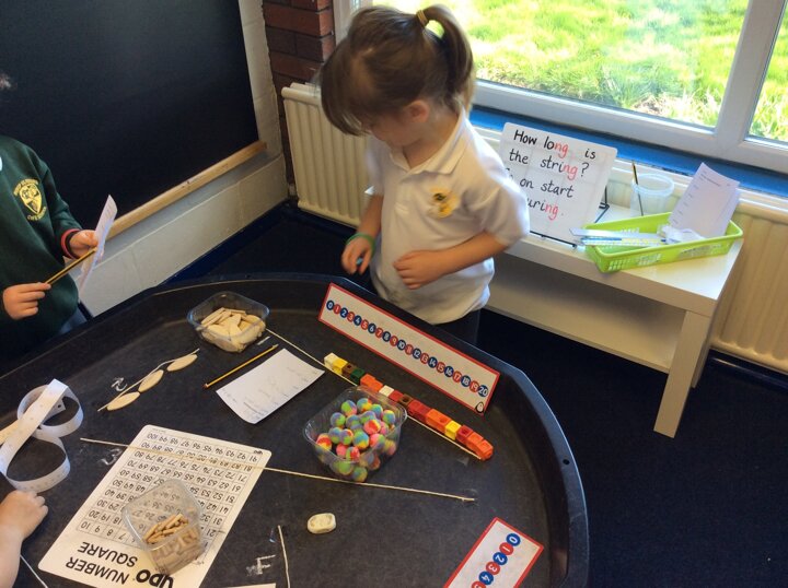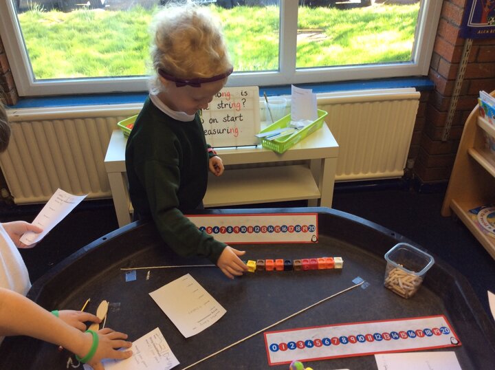 25 March 2019 Penny Kemp Lower School (KS1) Take a look at these photographs to see all the great maths learning that has happened today as the children in EYFS, Year 1 and Year 2 investigated length and height. Great busy bee learners. Measuring