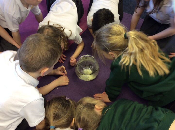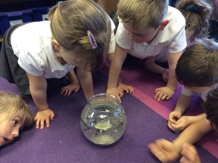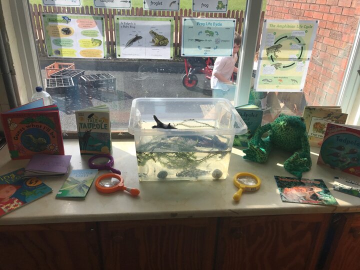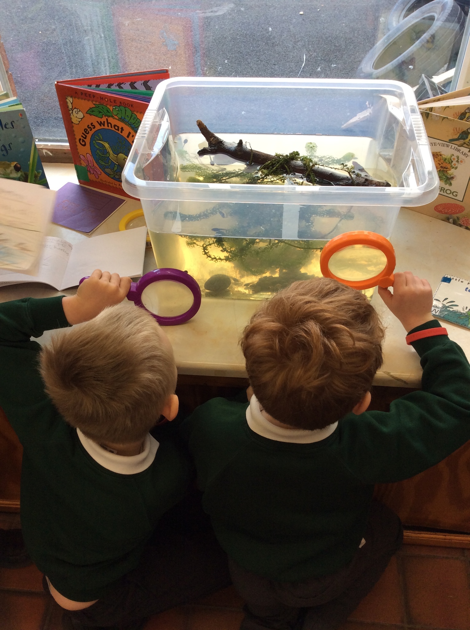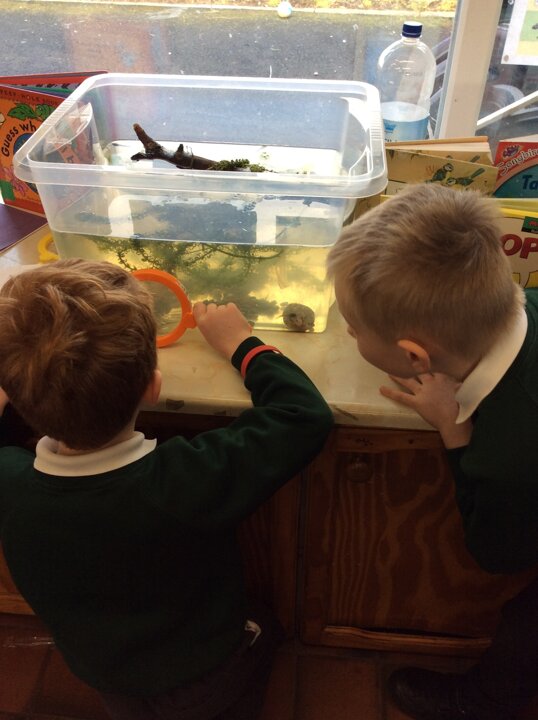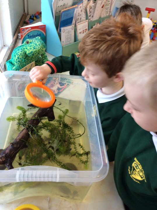 The children check on the tadpoles throughout the day and are keeping a diary recording what they observe.