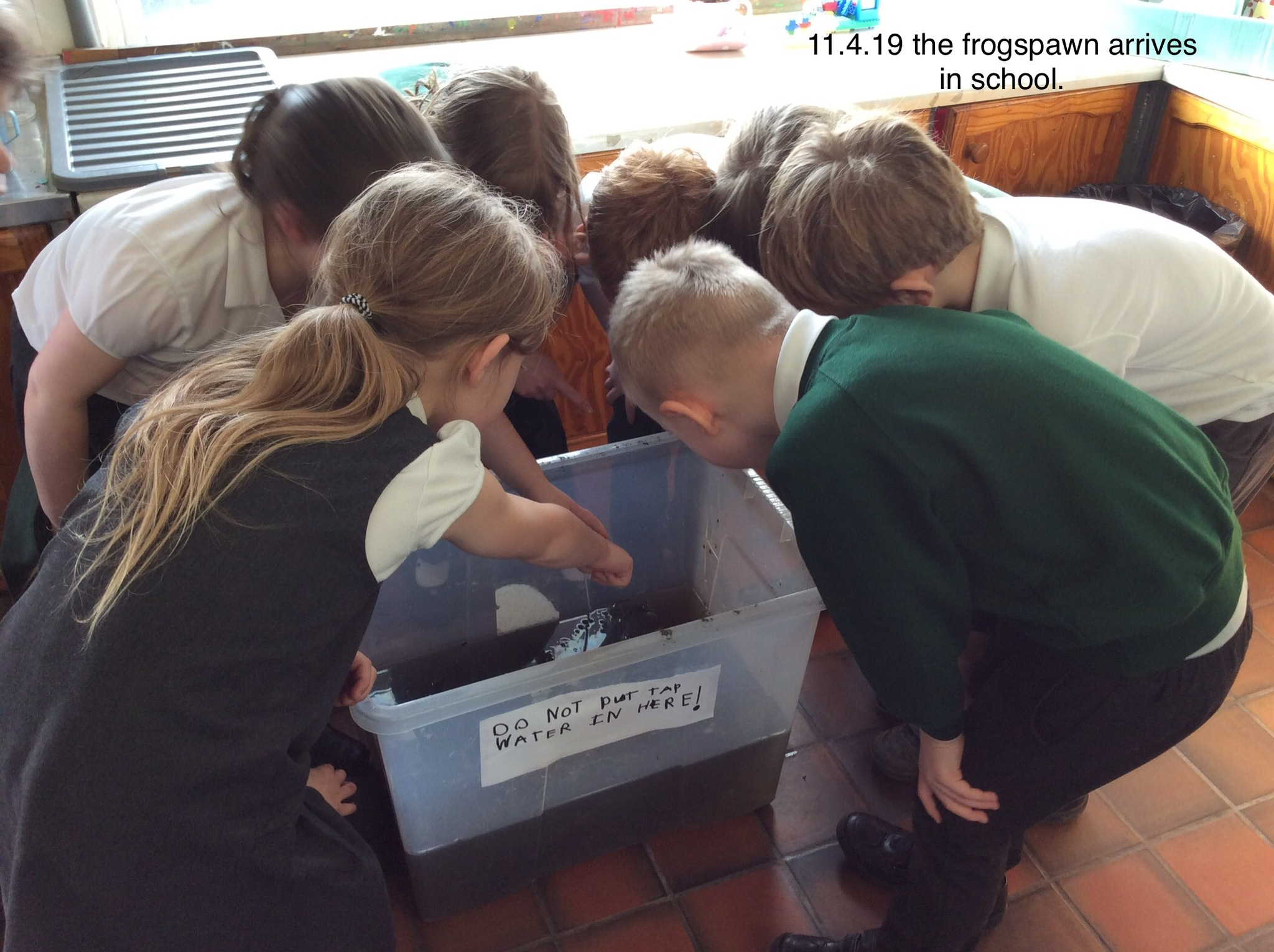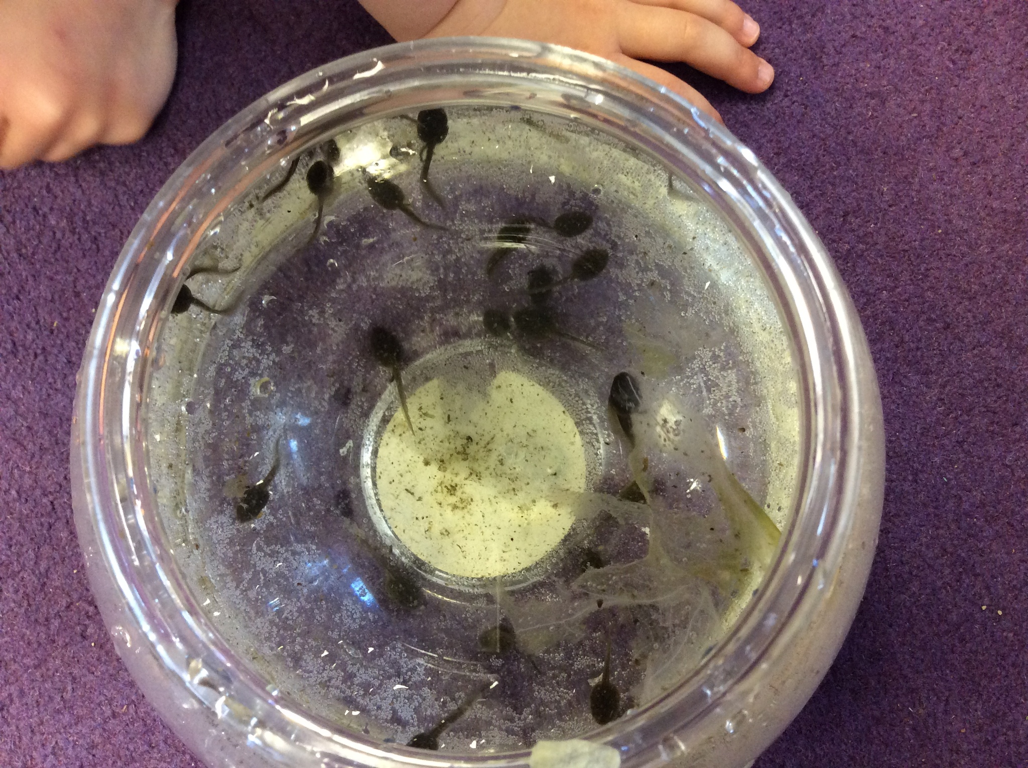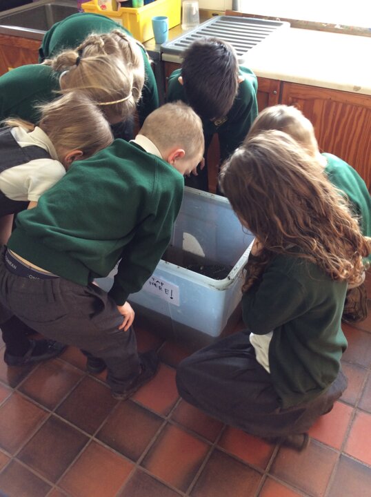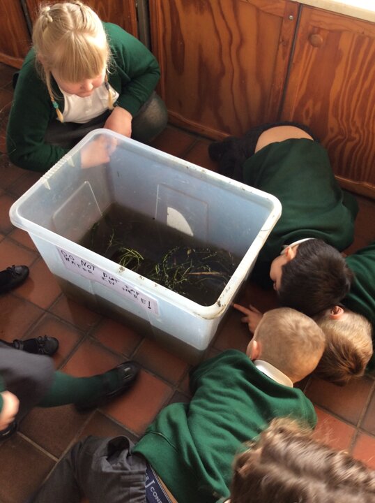 The children check on the tadpoles throughout the day and are keeping a diary recording what they observe.