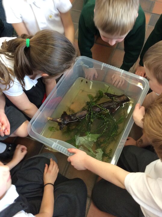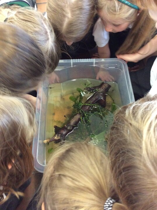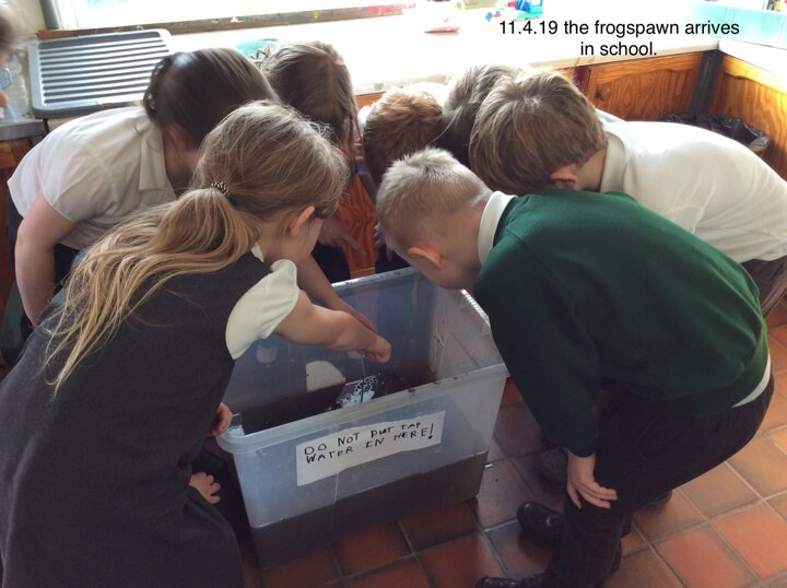 Just over four weeks ago Ivy’s mum and grandma brought us some frogspawn from their pond for us to watch it develop and learn about animals and their life cycles. When the frogs have grown we will be taking them back to the pond. It is fascinating!