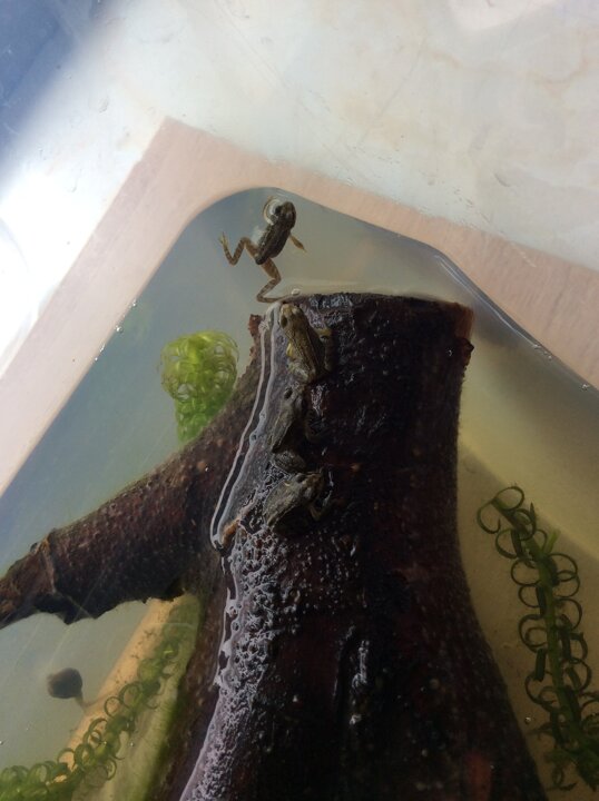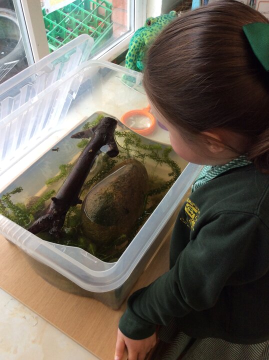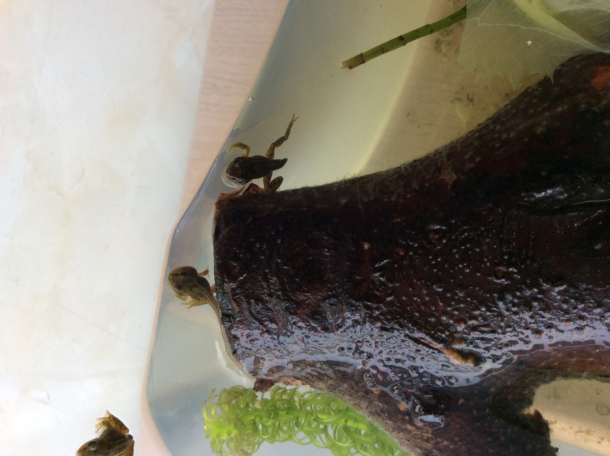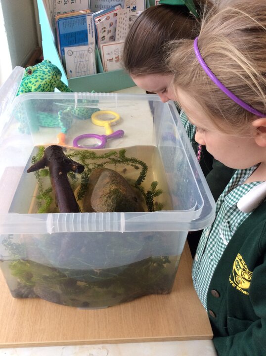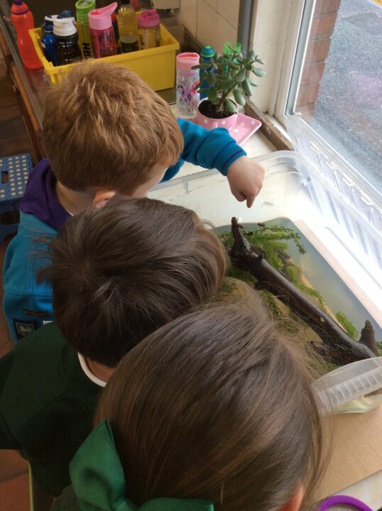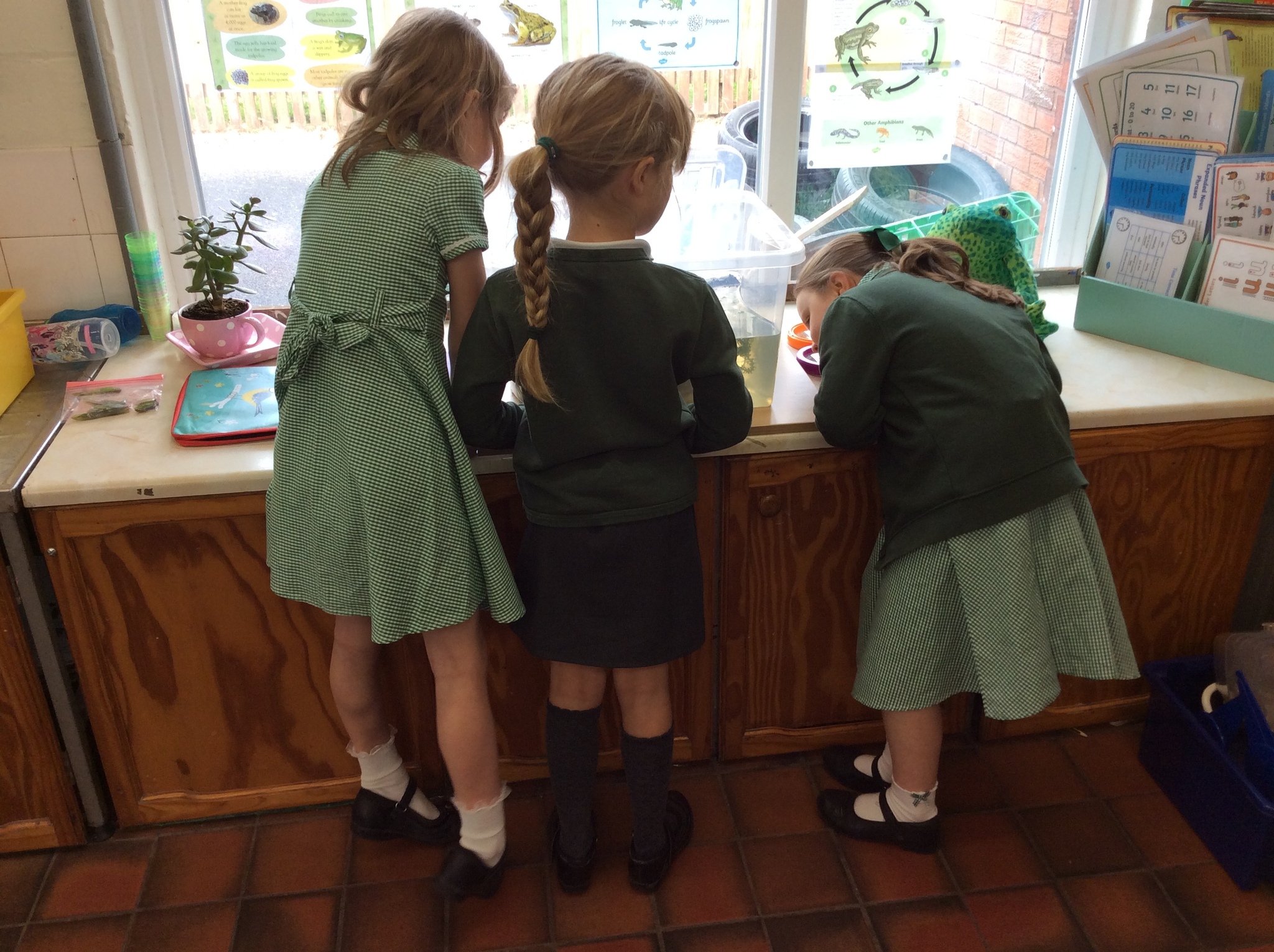 The Tadpoles have turned into frogs over the Easter holidays, the children have been very excited to see them and observe the changes this week. The frogs are fascinating to watch.