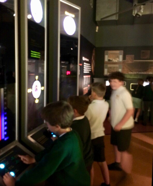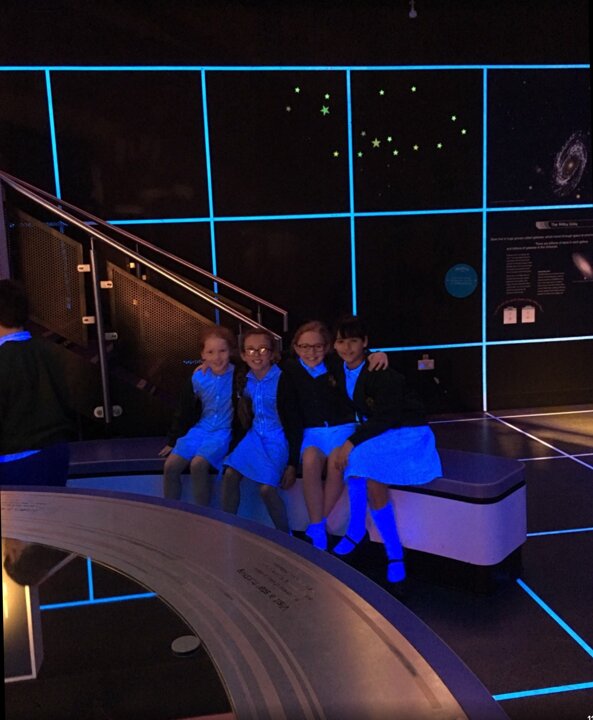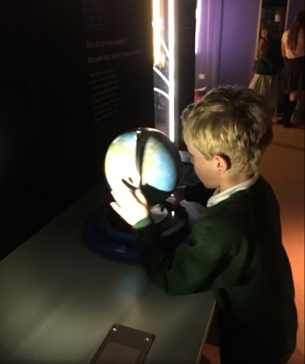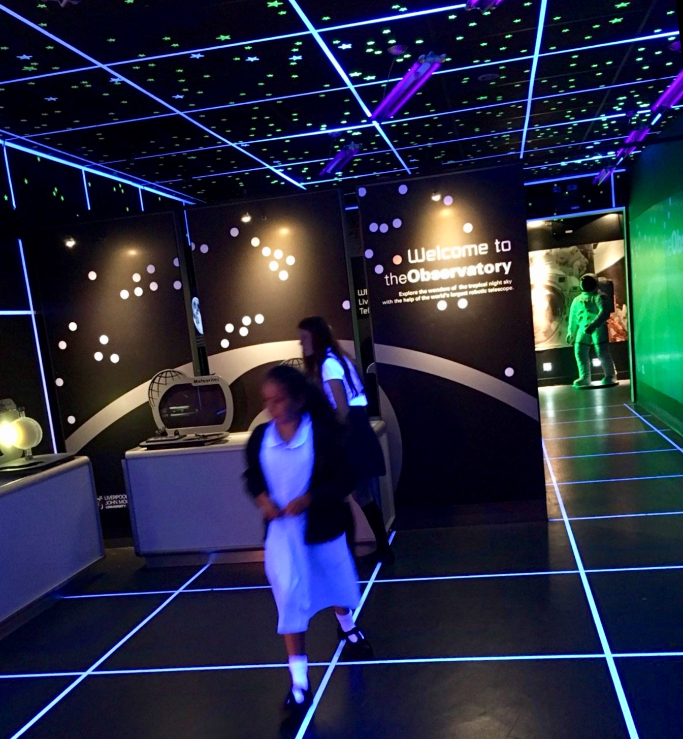 Our Upper School class had a fantastic visit to Liverpool’s Spaceport centre. We watched a film asking about the possibility of life on another planet ‘Are we aliens?’ and also one on astronaut training. There was a room where your white clothes turned luminous and quizzes all over the place. We saw simulators and Star Wars eqipment, we loved it! We are now using the knowledge we gained there as research for our Astronaut work at school.