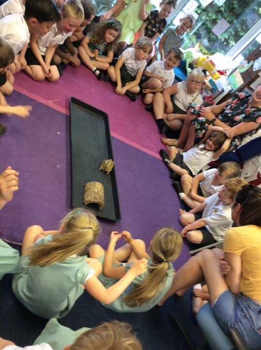 15 July 2019 Penny Kemp Lower School (KS1) Ted’s tortoise came for a visit today and we learnt how to care for a tortoise. Ted’s tortoise