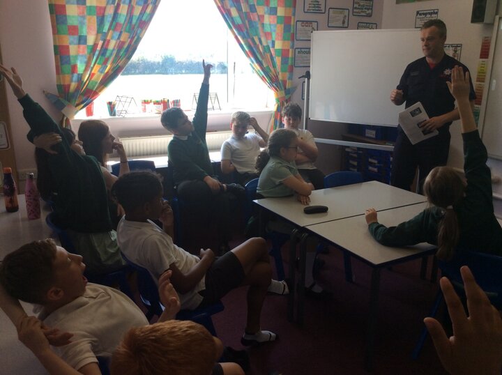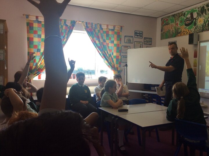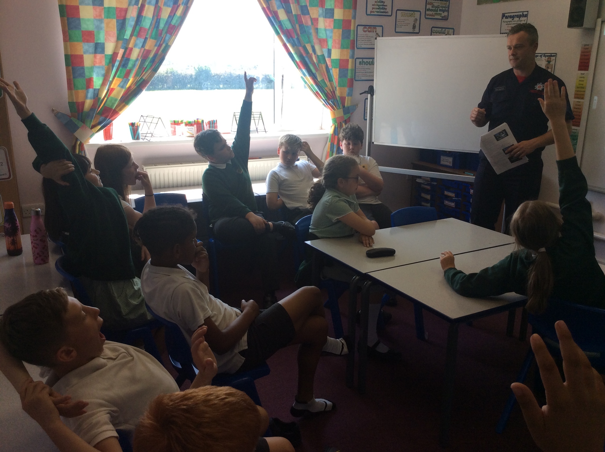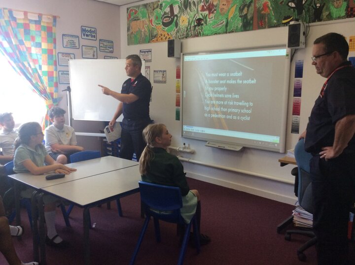 16 July 2019 Kate Leyland Upper School (KS2) Fire safety officers came to talk to our Year 5s and 6s about road safety and a range of other safety and community behaviour pointers. RoadSense