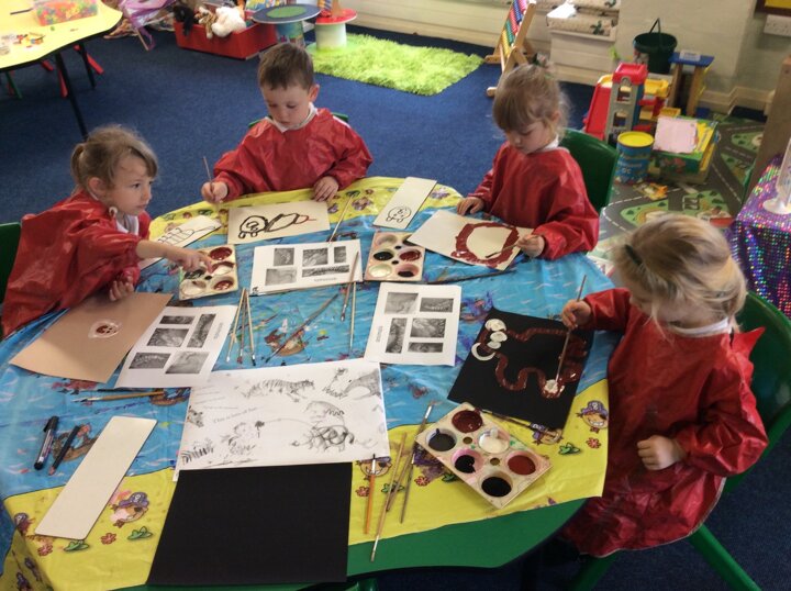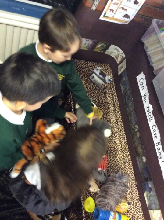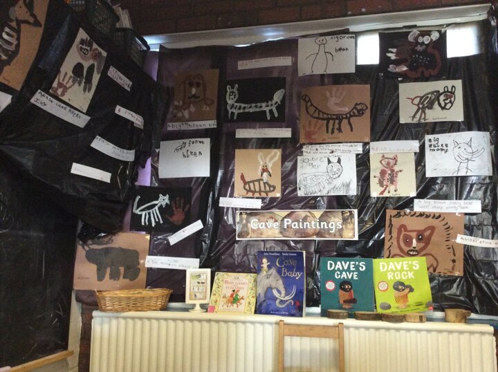 We have been busy! We have done lots of writing around the great story ‘Cave Baby’ written by Julia Donaldson. We made a cave as a role play area and did our own cave paintings.