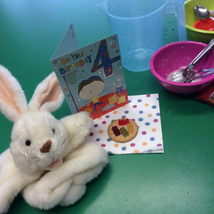 Gordon our Counting rabbit had his fourth birthday! He helped our reception children learn all about the number four and they had a birthday celebration for Gordon. They placed four place settings, decorated four biscuits with icing sugar and four bear sweets and did lots of fun things four times. Well done reception great number learning.
