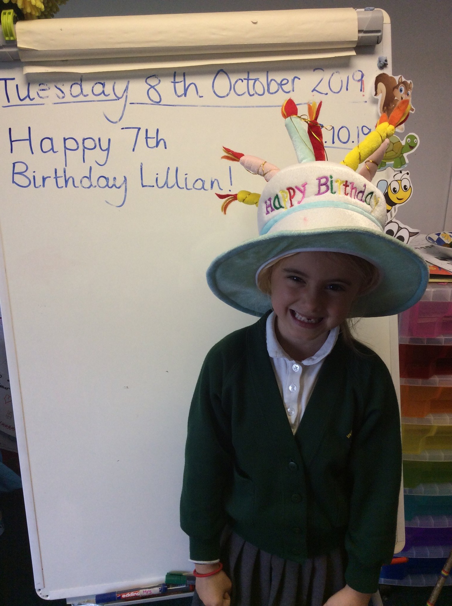 8 October 2019 Penny Kemp Lower School (KS1) Happy 7th Birthday Lillian! We hope you have a fabulous celebration.