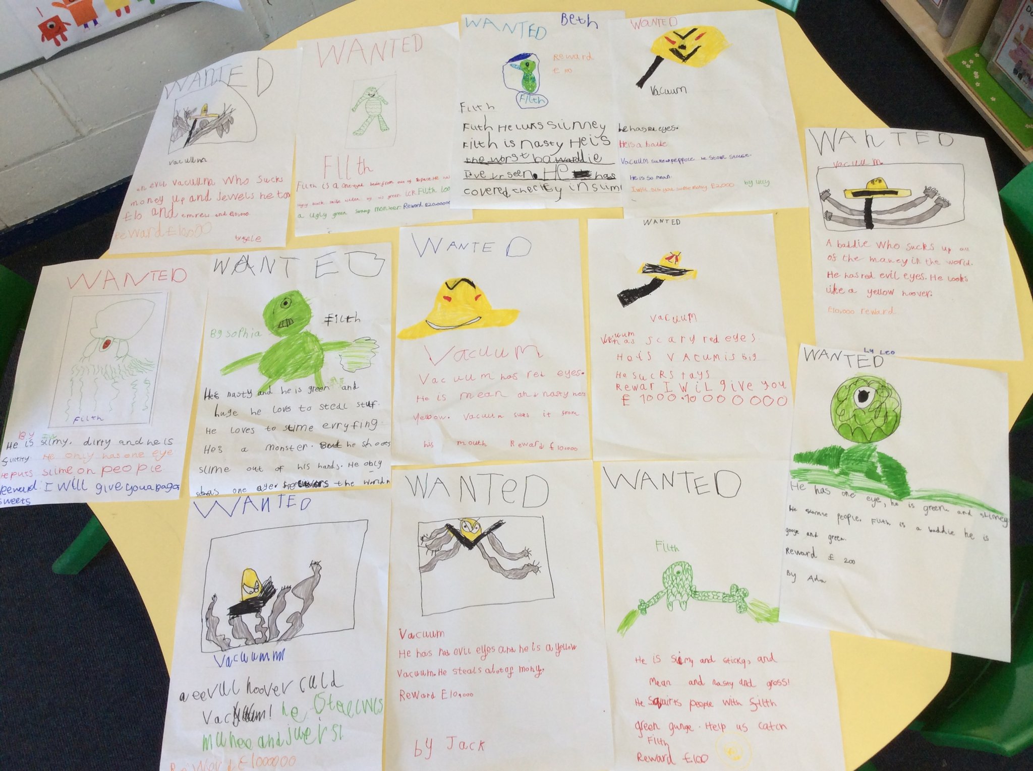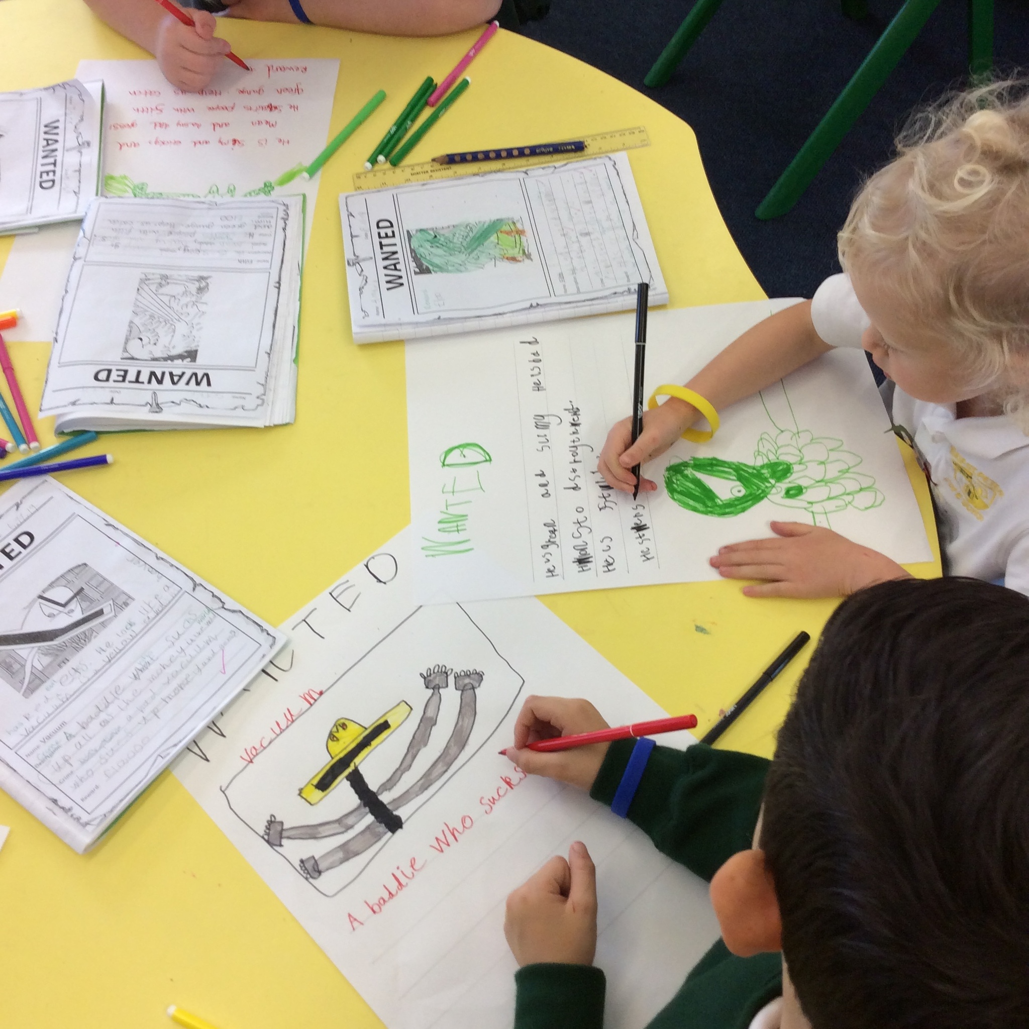 We have been reading the story ‘Send for a Suoerhero’ by Michael Rosen. Year One and Two have created some wanted posters to try and help catch the two baddies, Flash and Vacuum. Reception have been practicing their phonics learning with help from the two baddies, have a look at these photos to see what they’ve been doing ...
