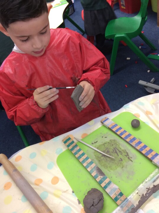 Progressing from the skills they learnt whilst making their Christmas tree decorations the children learnt how to make a pinch pot to create slip with water to act as a glue. They learnt how to cross hatch their pieces before joining them with the slip. They really enjoyed pinching, squeezing, pulling and rolling the clay to make their figures. Well done Lower School!