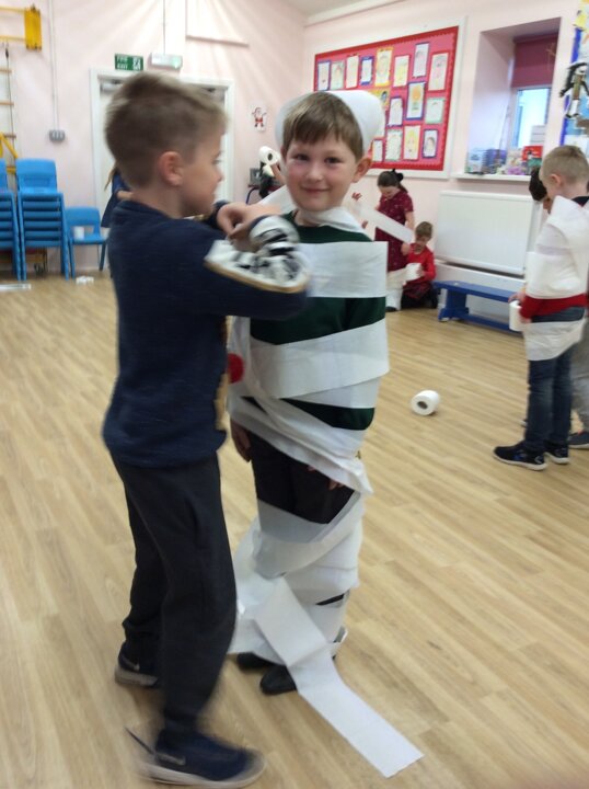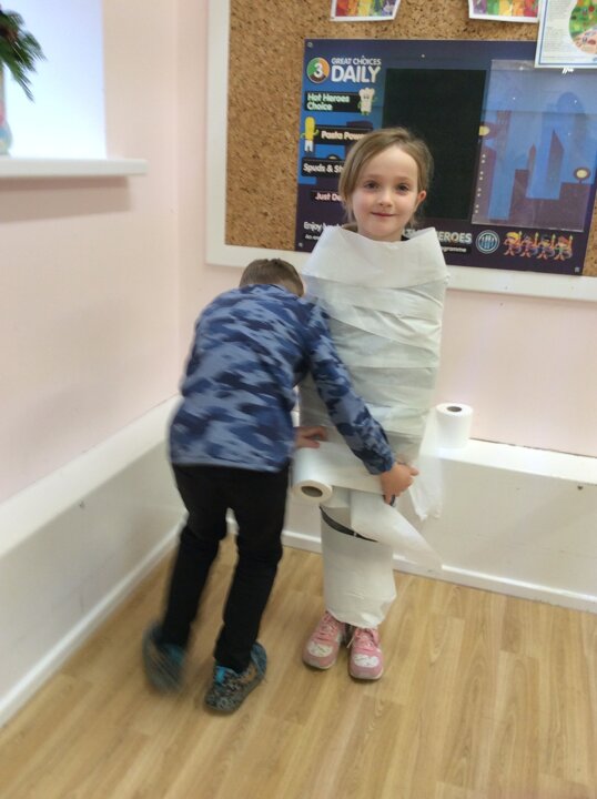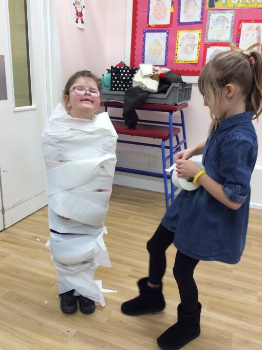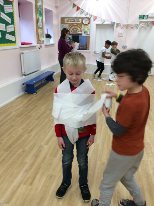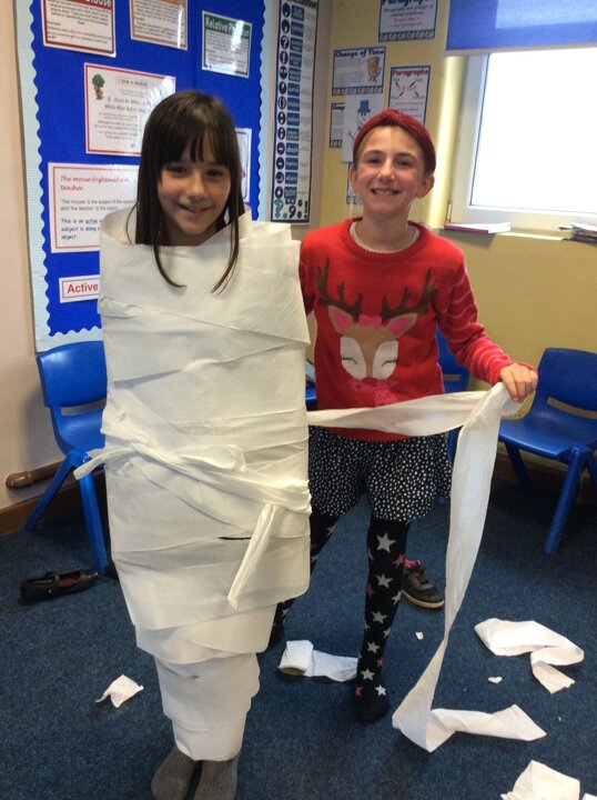 This morning Upper School classes enjoyed their annual Christmas parties. Much fun was had by all as they played a variety of games, the favourite being an Egyptian themed game where the had to ‘mummify each other using toilet roll! The results were quite impressive!