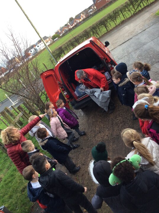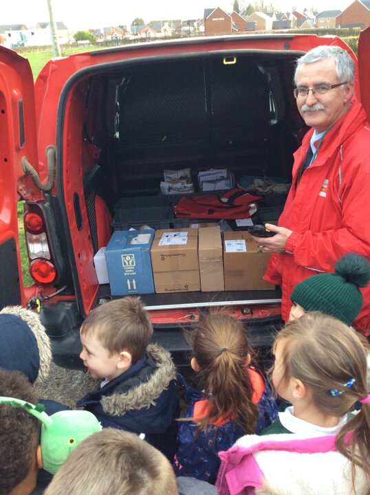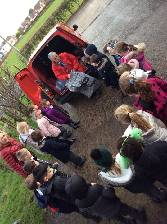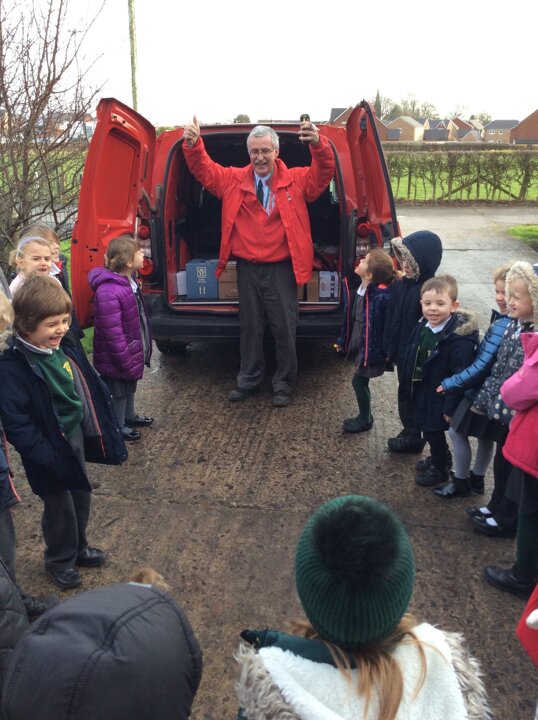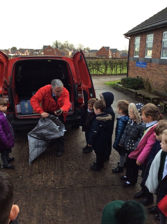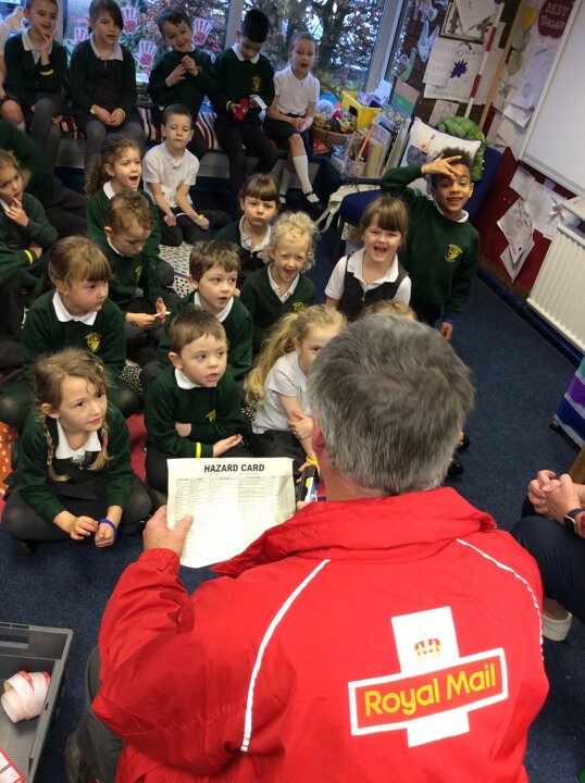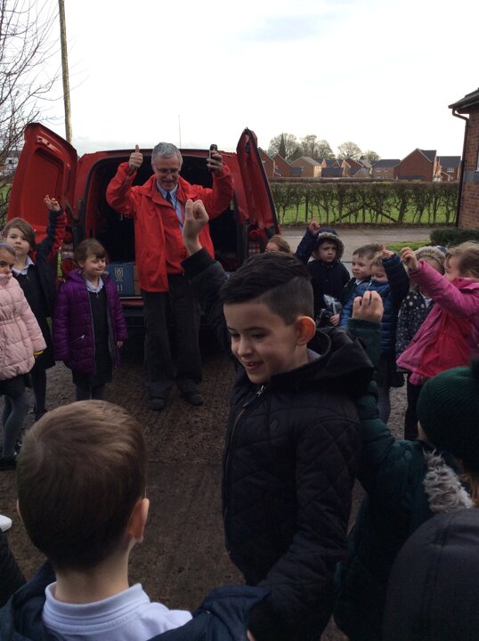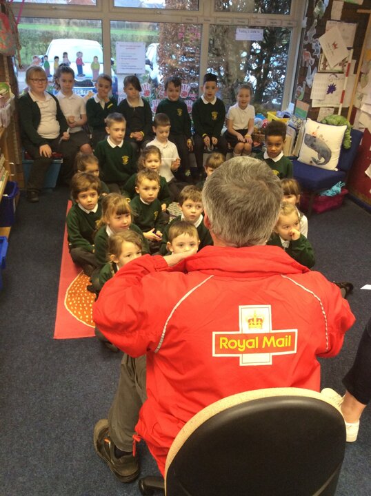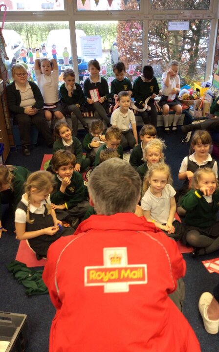 Today we were very lucky to have a visit from Anthony Roberts, a local postman who came to tell us all about his job. In our English lessons we have been reading the book 'The Jolly Postman' to inspire our writing and so we were excited to welcome a real, jolly postman into school!