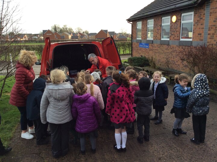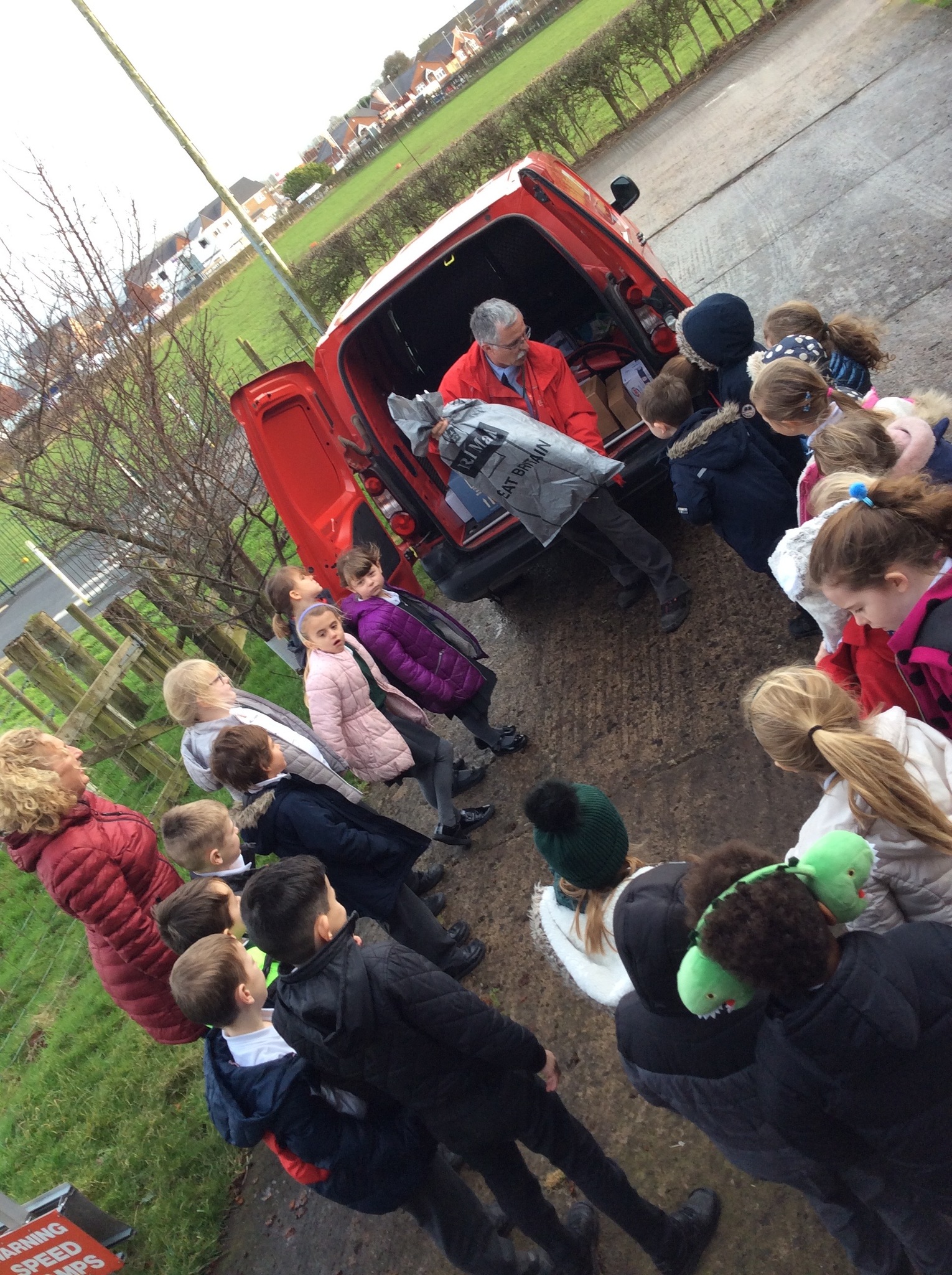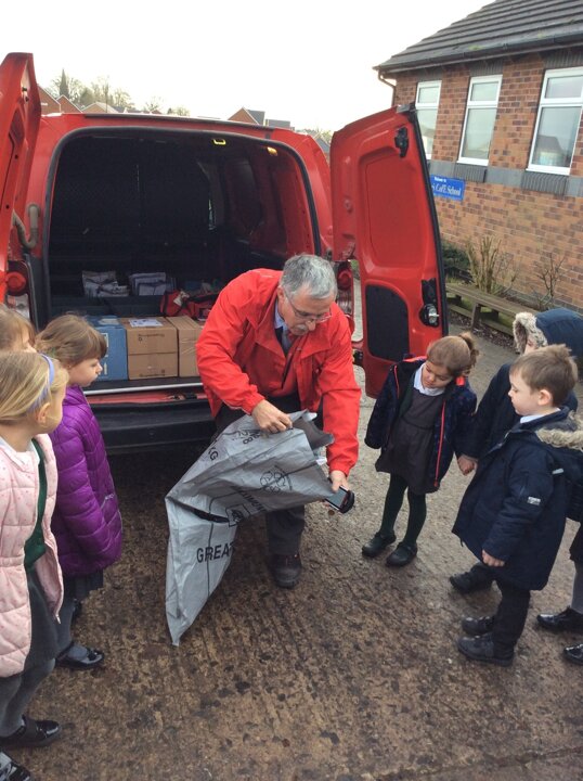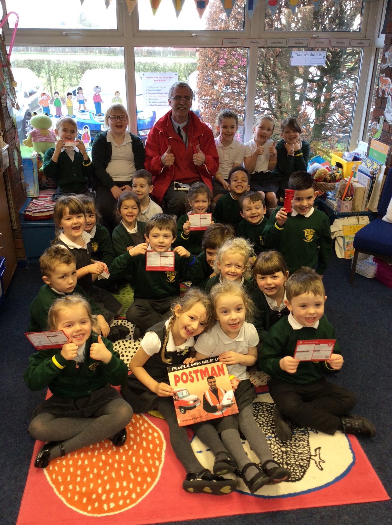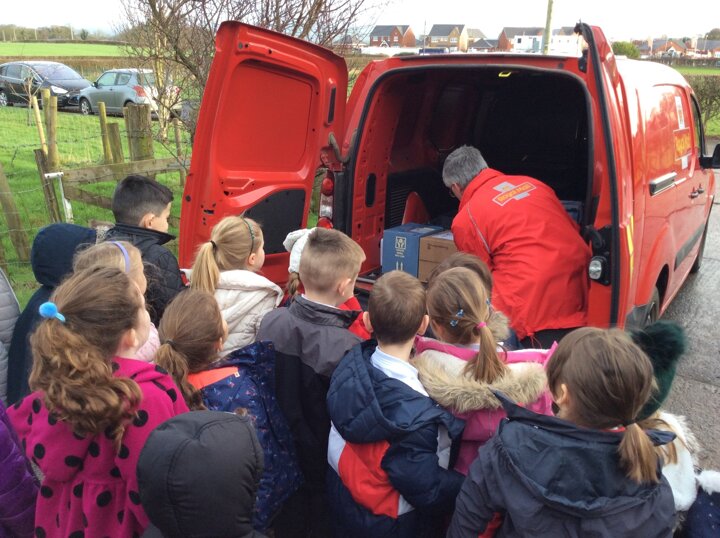 Today we were very lucky to have a visit from Anthony Roberts, a local postman who came to tell us all about his job. In our English lessons we have been reading the book 'The Jolly Postman' to inspire our writing and so we were excited to welcome a real, jolly postman into school!