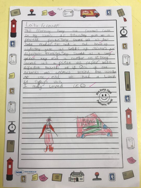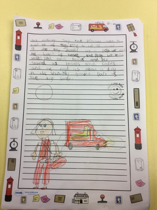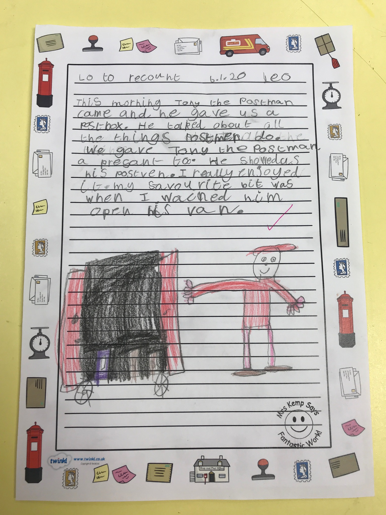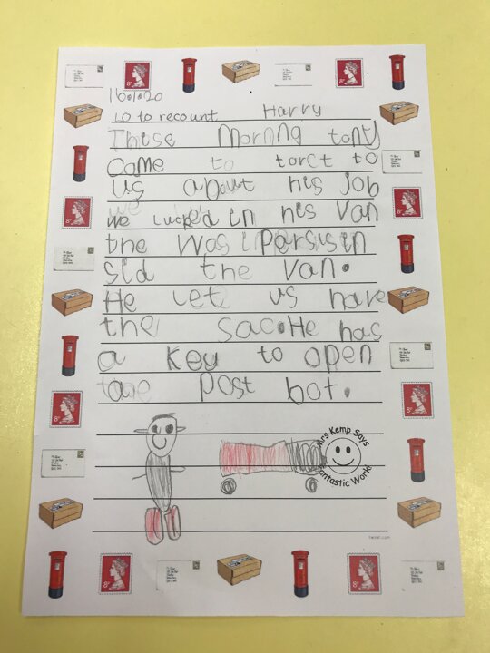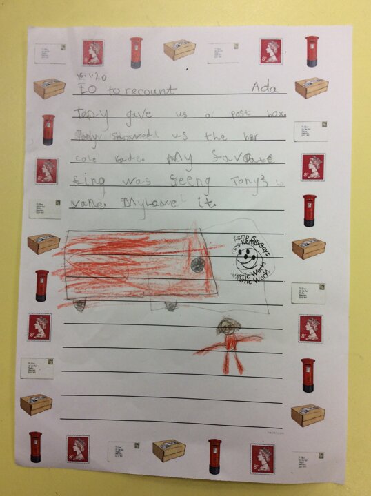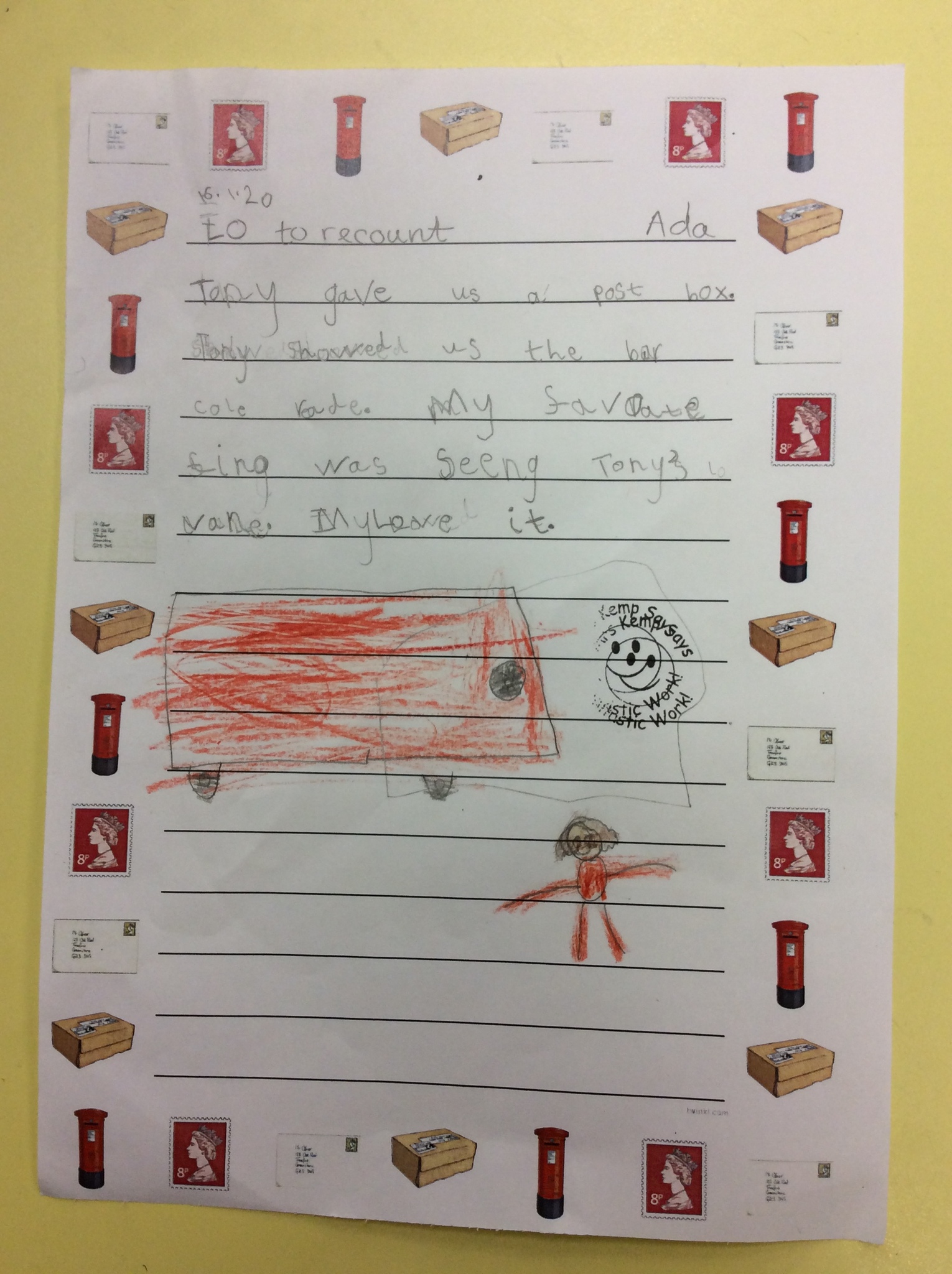 After Tony left to go and deliver the mail the children wrote some fantastic recounts of the visit. I was so impressed with how much they had learnt and enjoyed the visit.