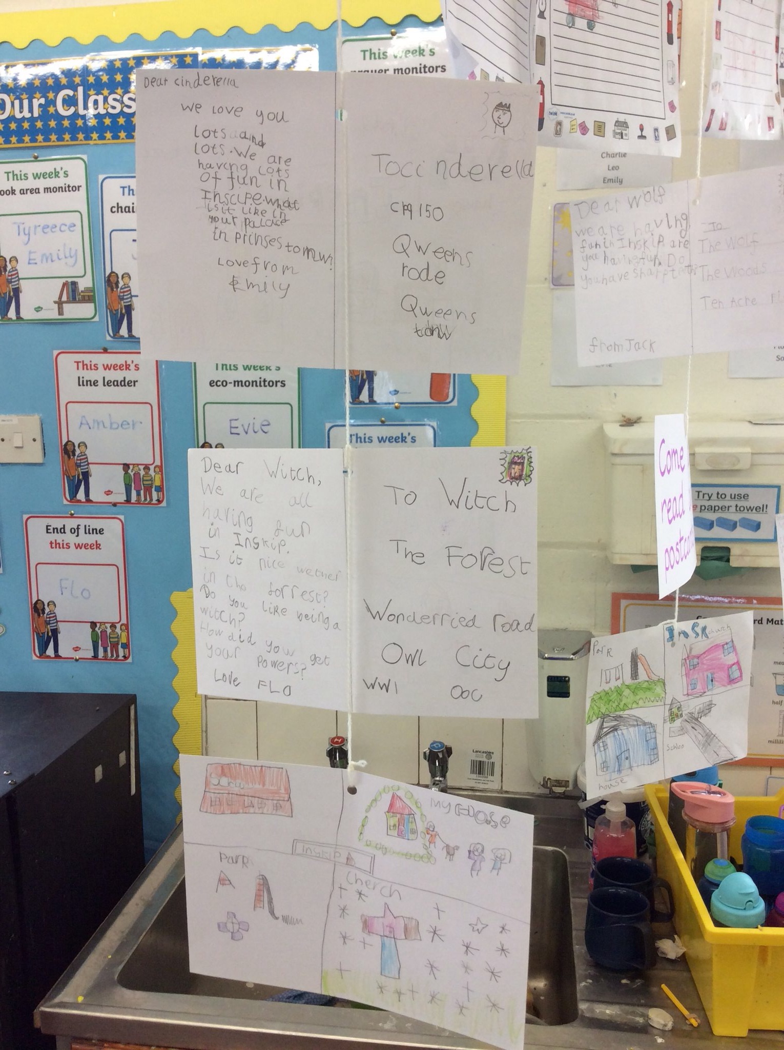 The children have written a recount of the postman’s Visit, a postcard to their favourite fairy tale character from Inskip (linking our geography learning about our local area) and some poetry.