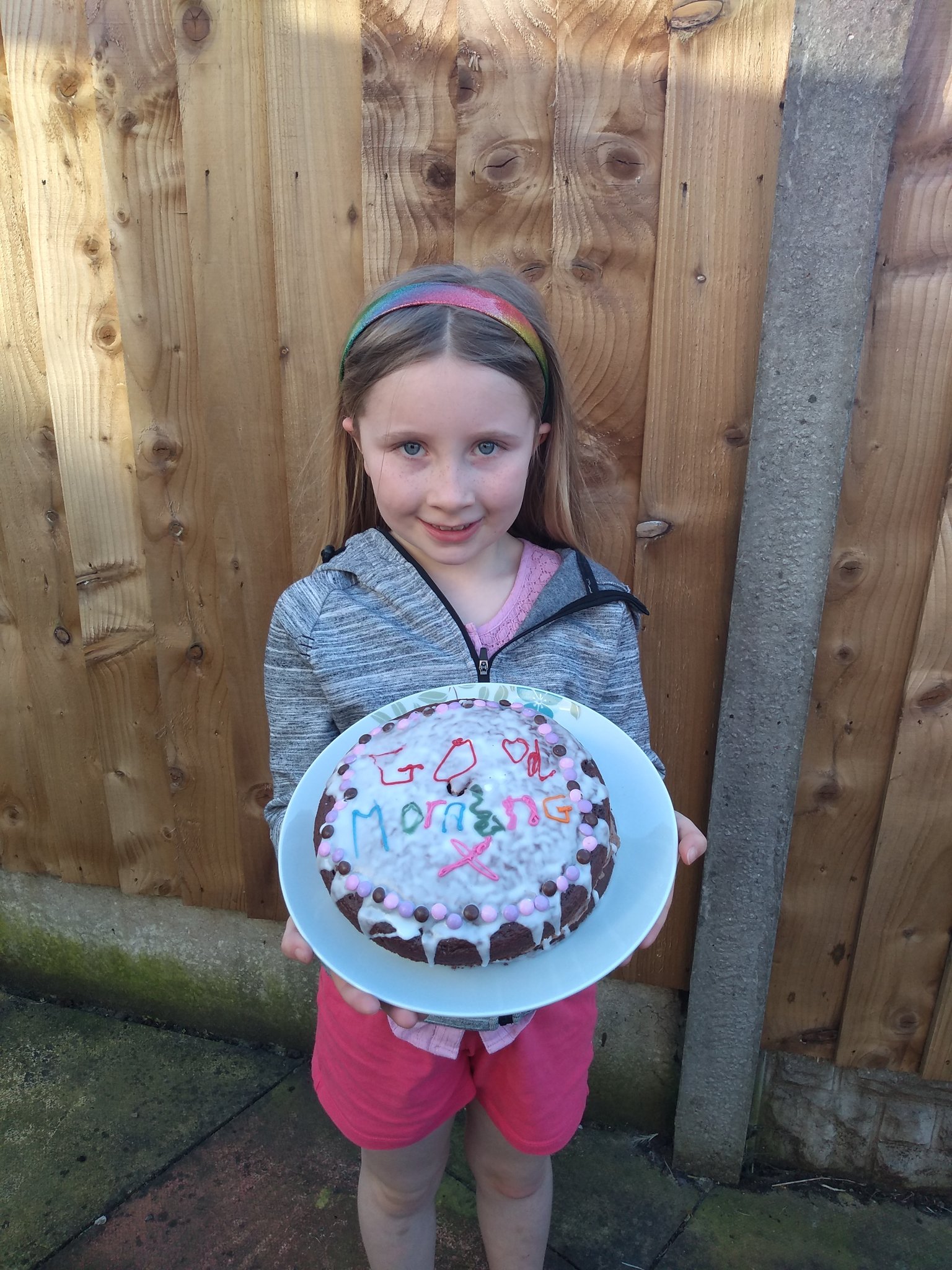 Emily is today's star of the blog! Well done Emily, what a creative idea to bake a chocolate cake and write good morning on it in icing, it looks delicious! I know that you baked and iced this cake all on your own without any help - you superstar!