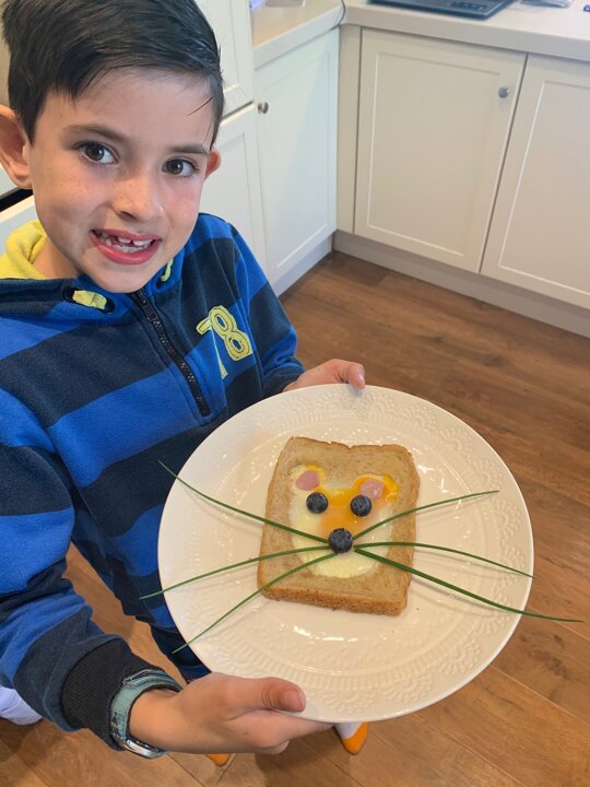 Well done those of you who had fun with the recipes yesterday Leo made some fantastic mouse toast and I have just had another email with a photo of Alfie and his fantastic mouse toast ...
