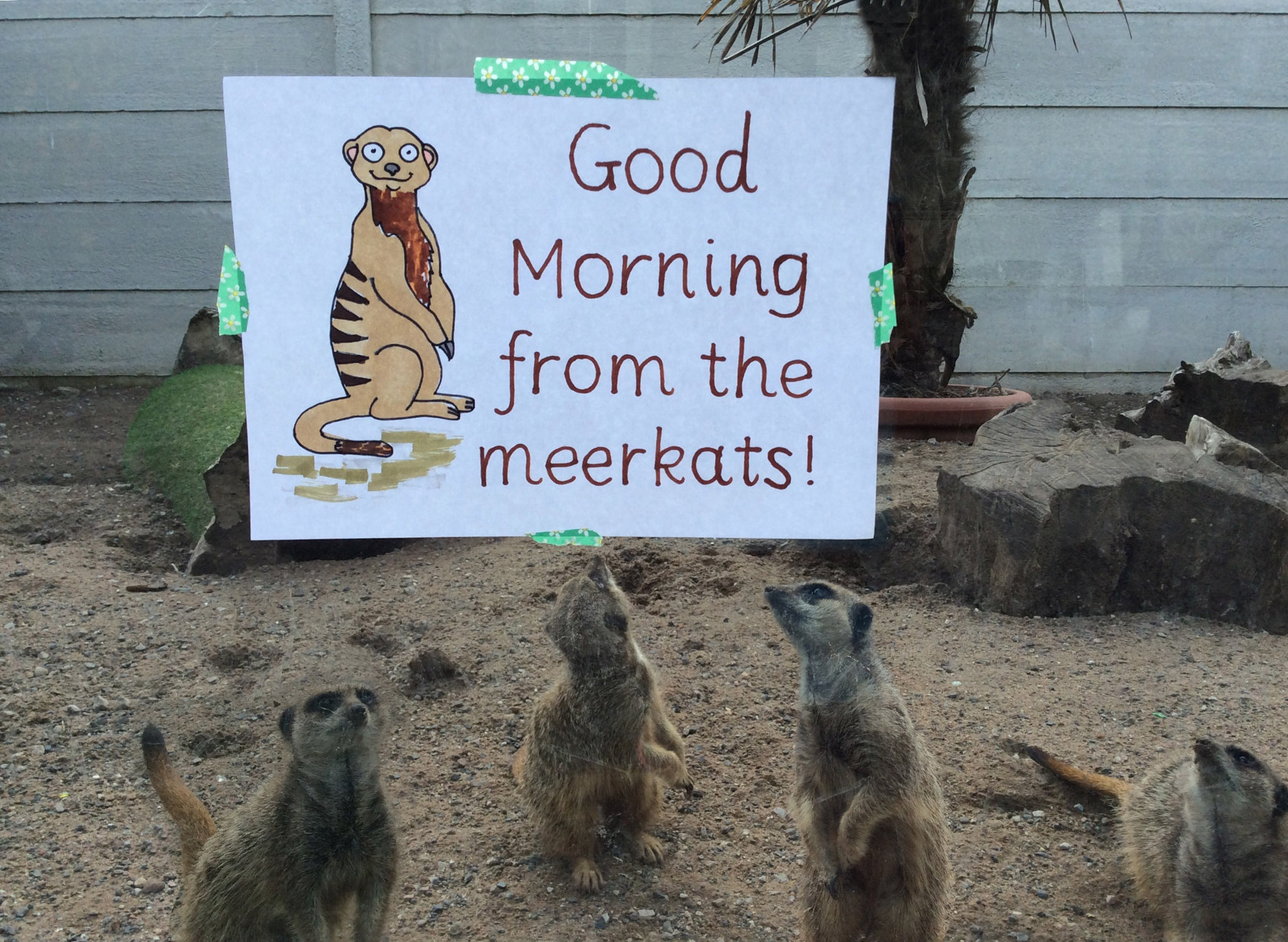 The stars of the blog this morning are Miss Haynes's Dad's meerkats! They are very interested the sign that Miss Haynes put on their window aren't they?