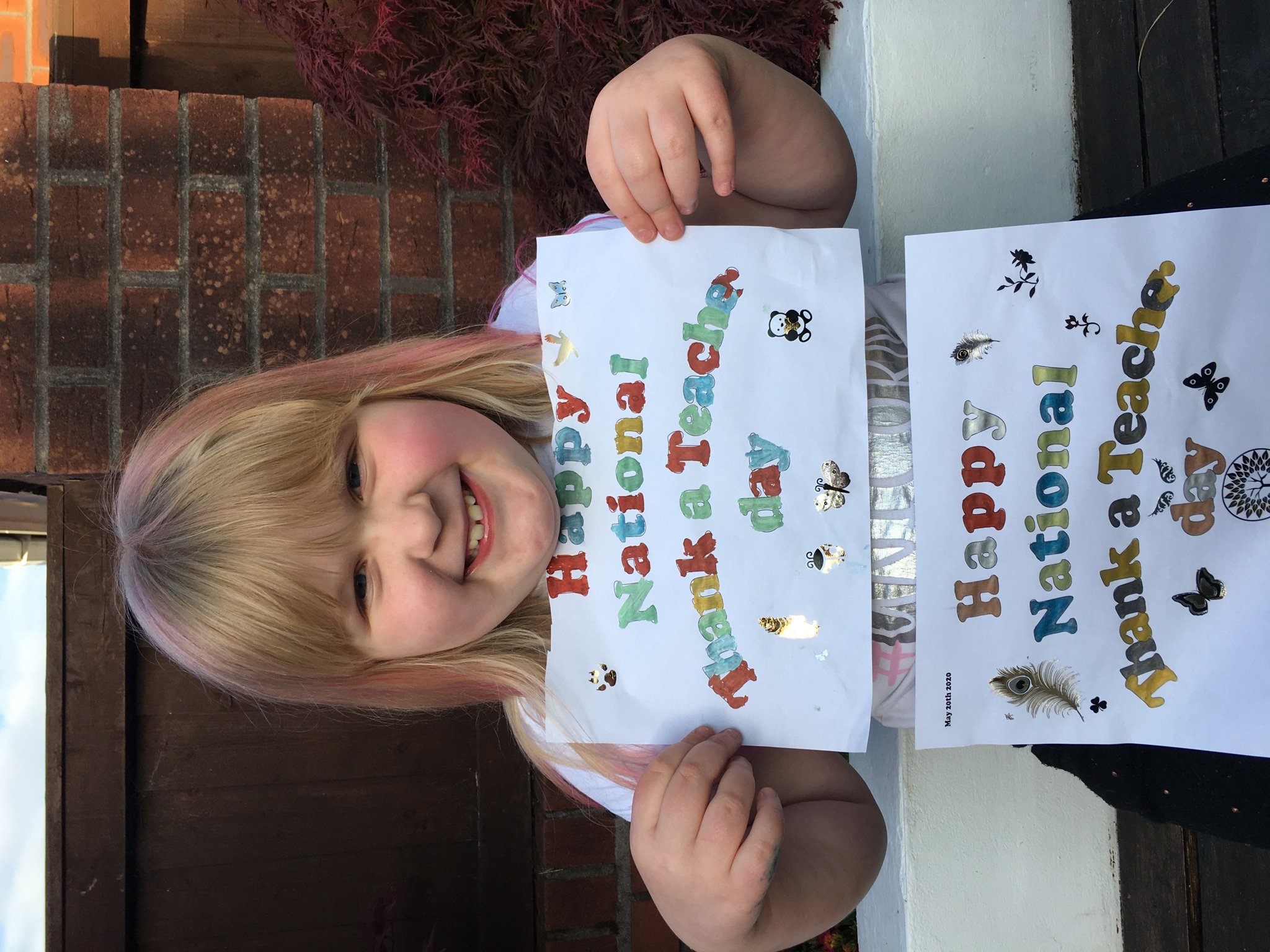 'Me and my mum made these pictures for you and miss Haynes because tomorrow is national thank a teacher today and I think you are the best teacher in the world and you are always smiling and I like being in your class.' Thank you Sophie, you are a ray of sunshine in our class we both love teaching you!