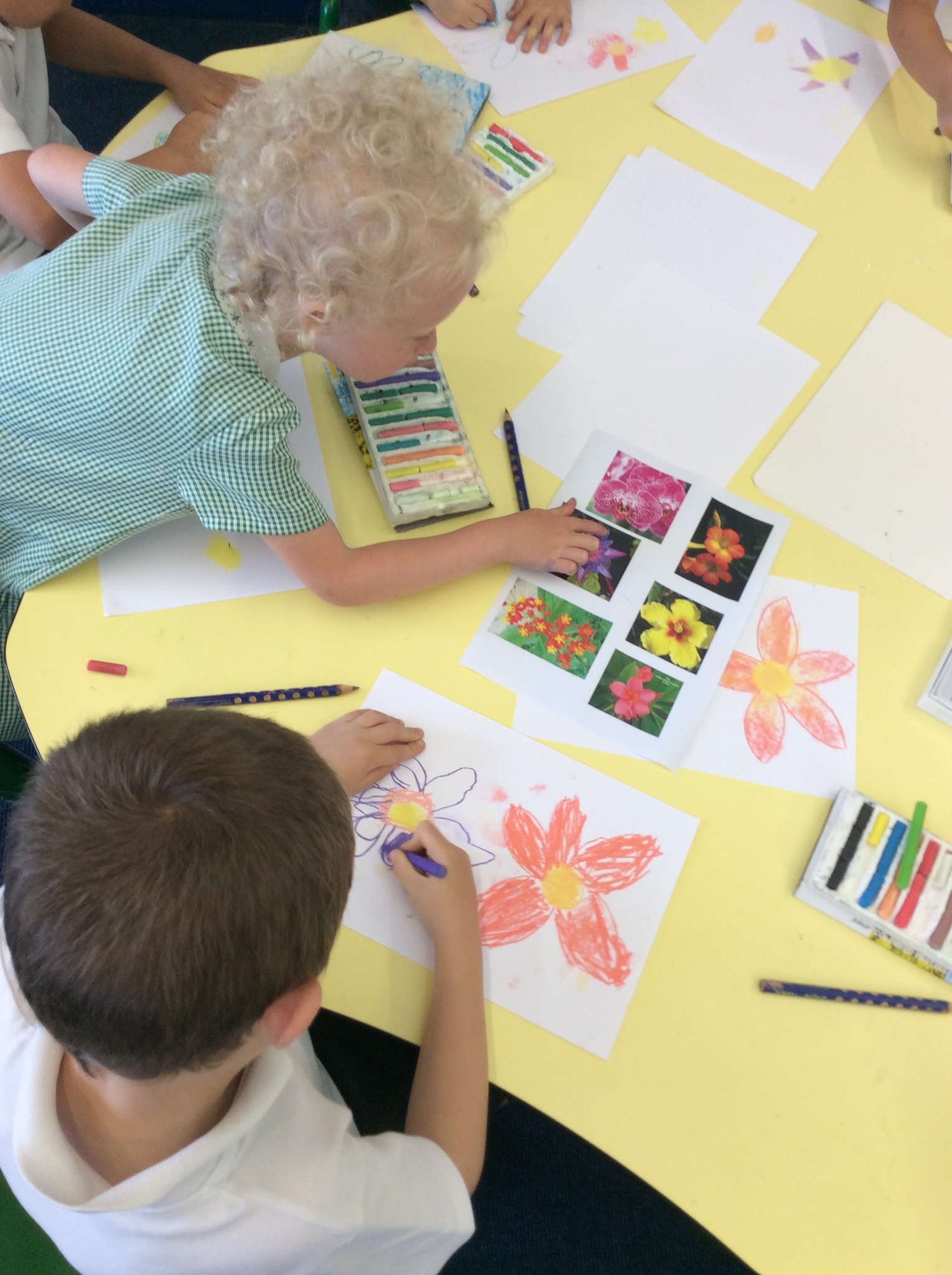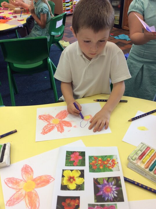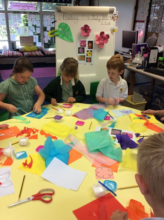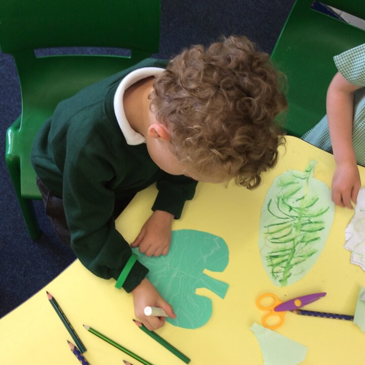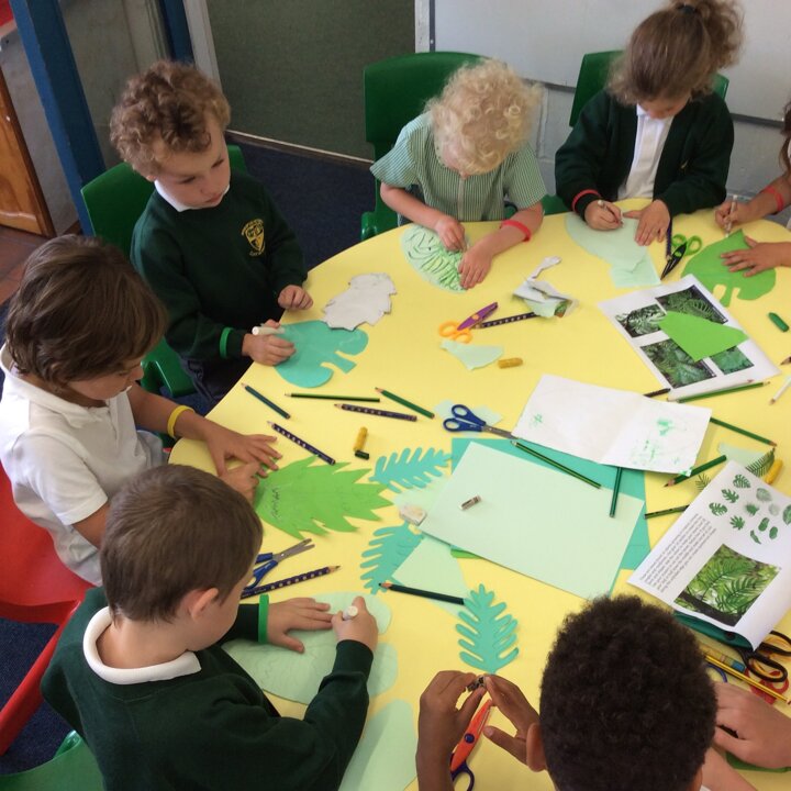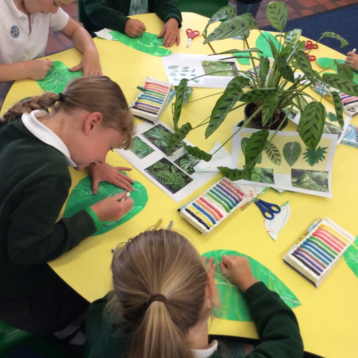 It was a really fun and rewarding project that we all enjoyed. The children learnt and practised new skills as we worked through each stage. We began by looking closely at Henri Rousseau's painting 'Tiger In A Tropical Storm Surprised', asking questions and making observations about the colours, style of painting and the content.