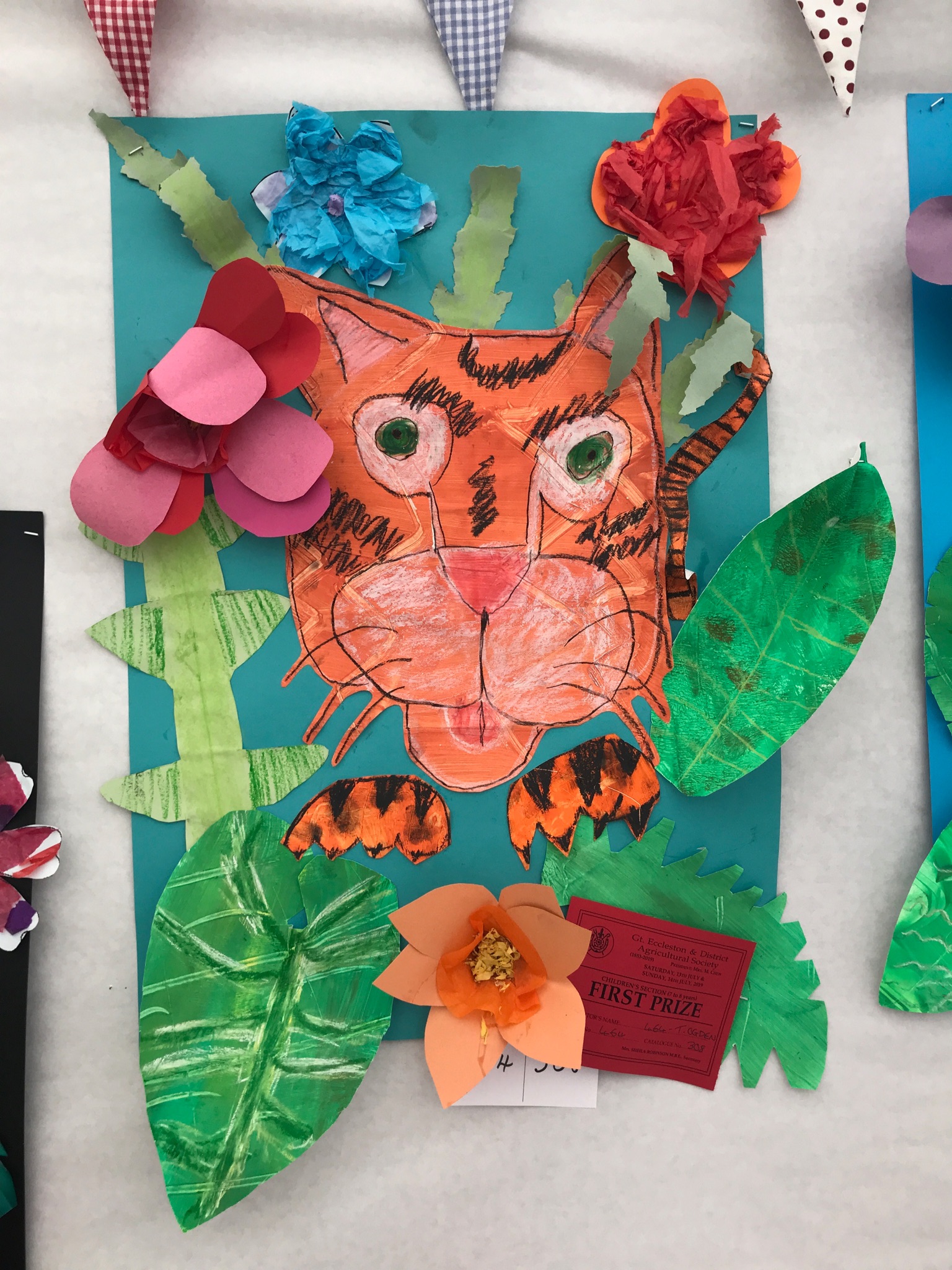 Can you remember doing this fantastic art project last year and then entering your work into a class at Great Eccleston show? Ted won first prize with his collage of a tiger hiding in the tropical plants inspired by Henri Rousseau's painting 'Tiger In A Tropical Storm Surprised'.