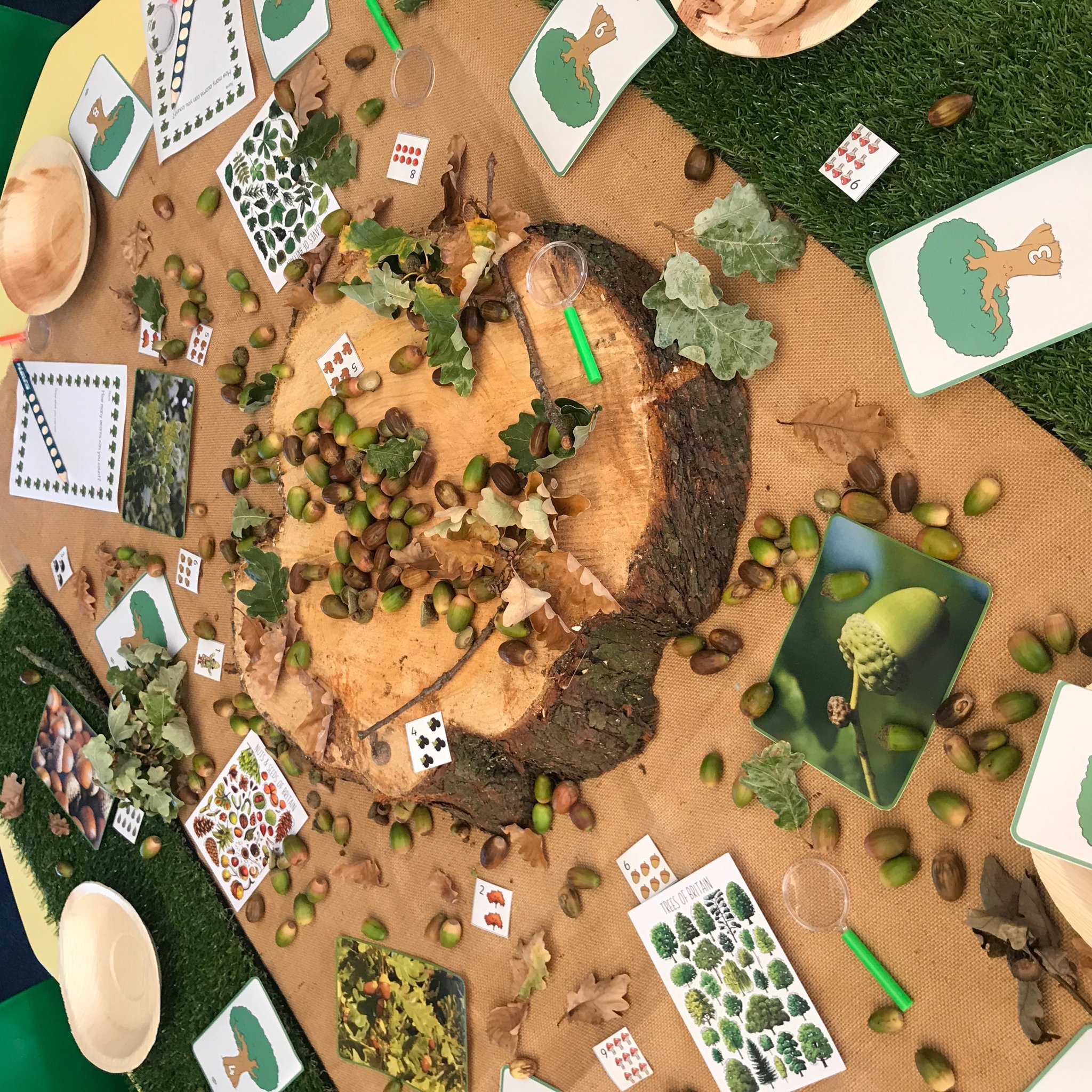 We are having so much fun learning with them. So far there has been lots of talk, observing, scientific enquiry, learning about the life cycle of an oak tree and maths with these beautiful acorns. We had a giggle when we talked about why only a very few acorns grow into Oak trees and decided another reason other than squirrels eating them could be bonkers teachers going out for Sunday lunch and making their whole family stop when they see an Oak tree to go and collect acorns from the ground around it! Most of the acorns will stay in school for the children to use and enjoy but some are going home to my house where we are going to plant them and hope to grow some saplings.