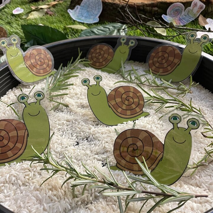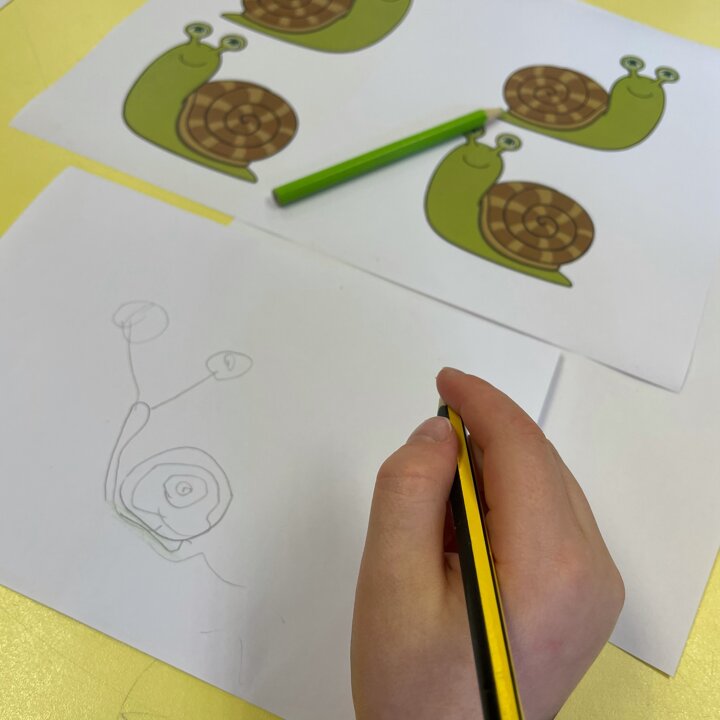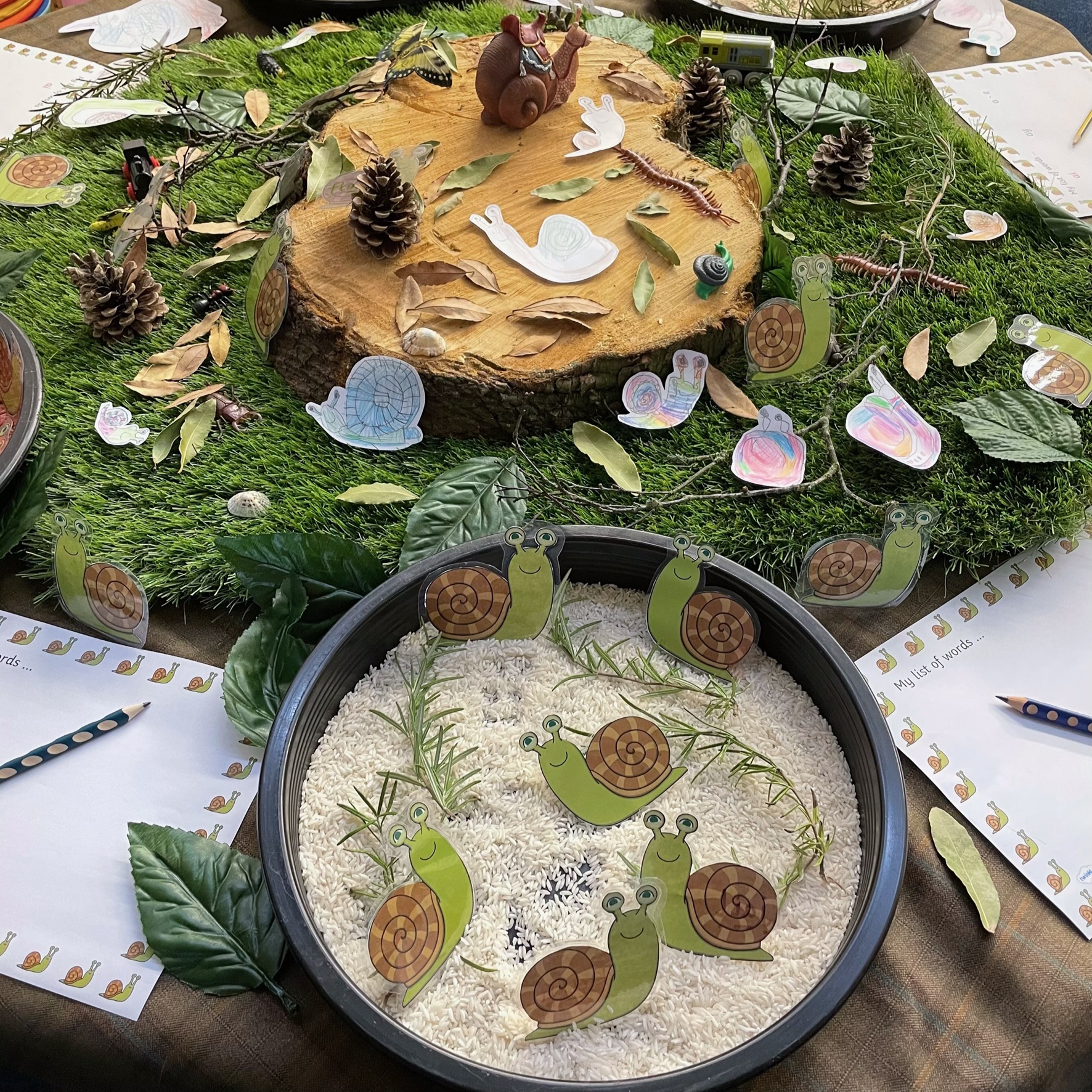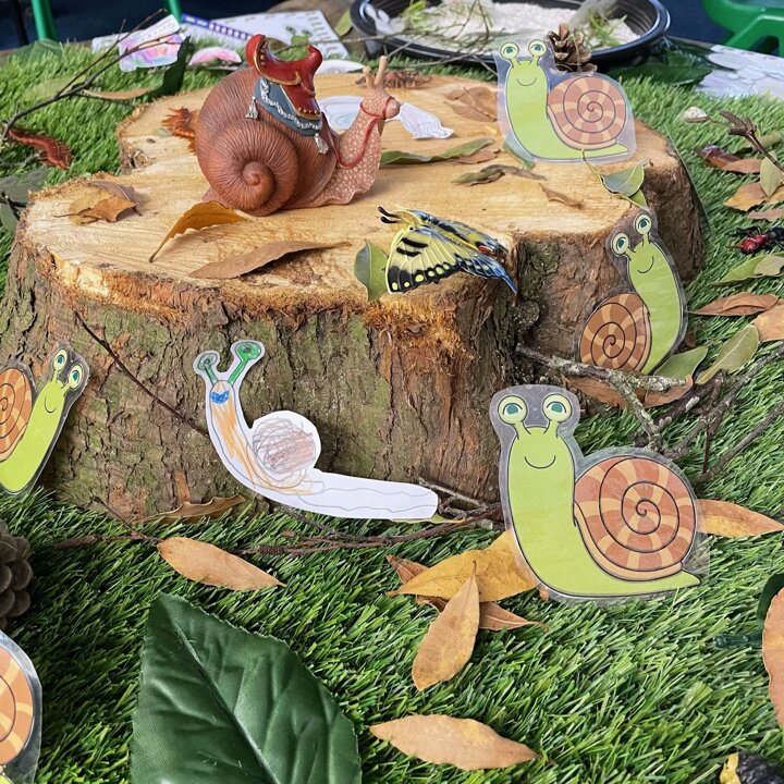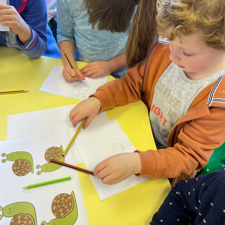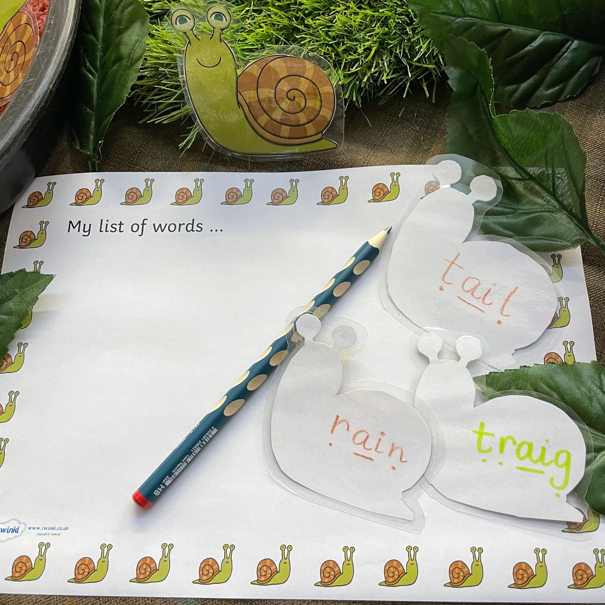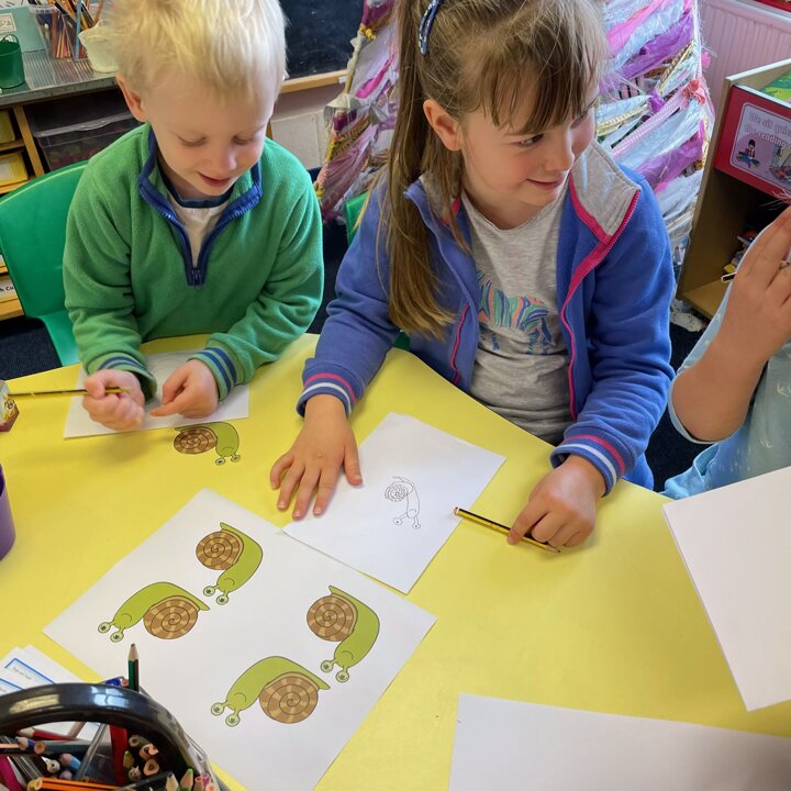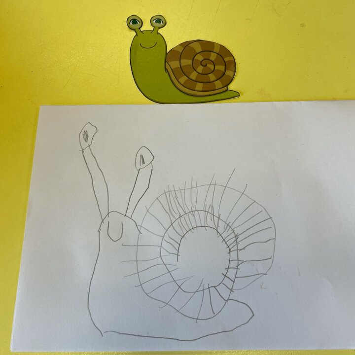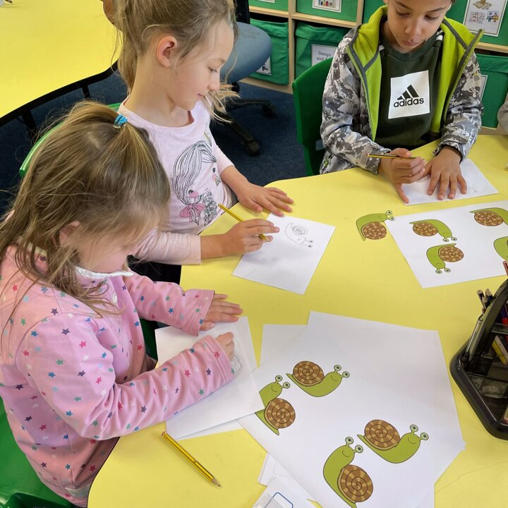 We started the learning by having a guided reading session reading fact cards about slugs and snails. We learnt lots of new things, had a great discussion and dispelled some misconceptions the children had. Then they all drew pictures of snails before colouring and cutting them out to add to the phonics activity.