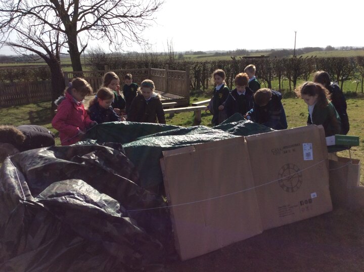 Middle school spent Monday creating their own den based on our class story Stig of the Dump. Children went outside to find a 'dump' full of useful items and objects. As a team, the children worked together to use the discarded objects to create a den fit for a caveman! We were so thankful for the sunshine (although we could have done without the wind trying to blow the roof away!). Well done Middle School.