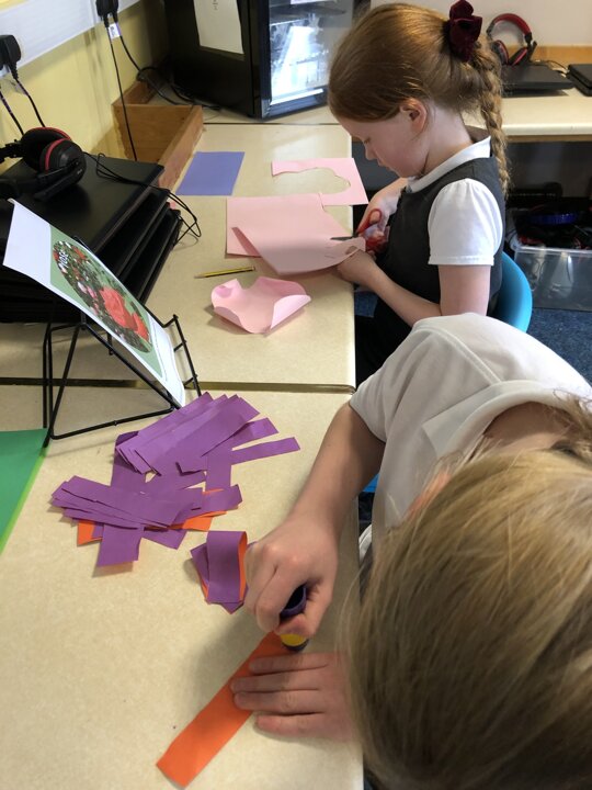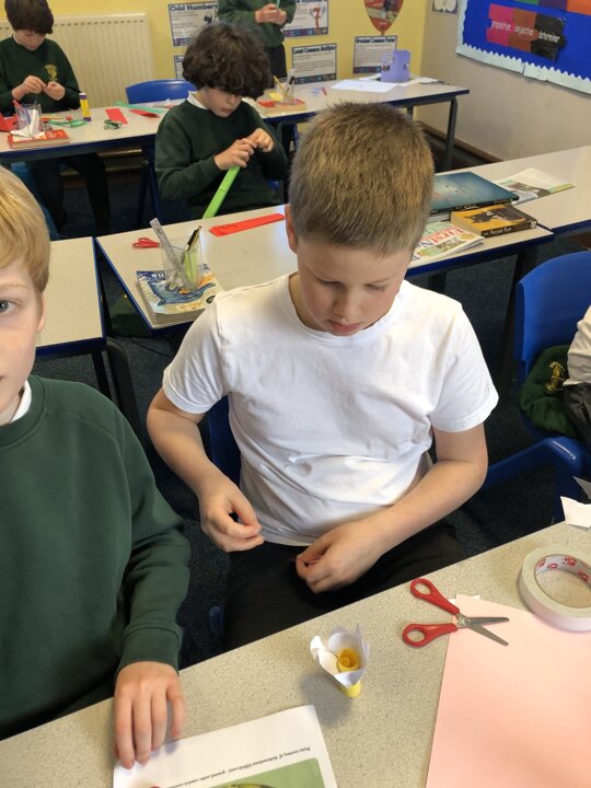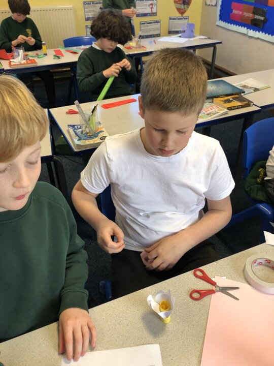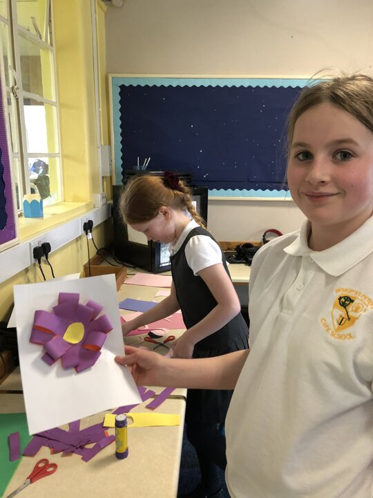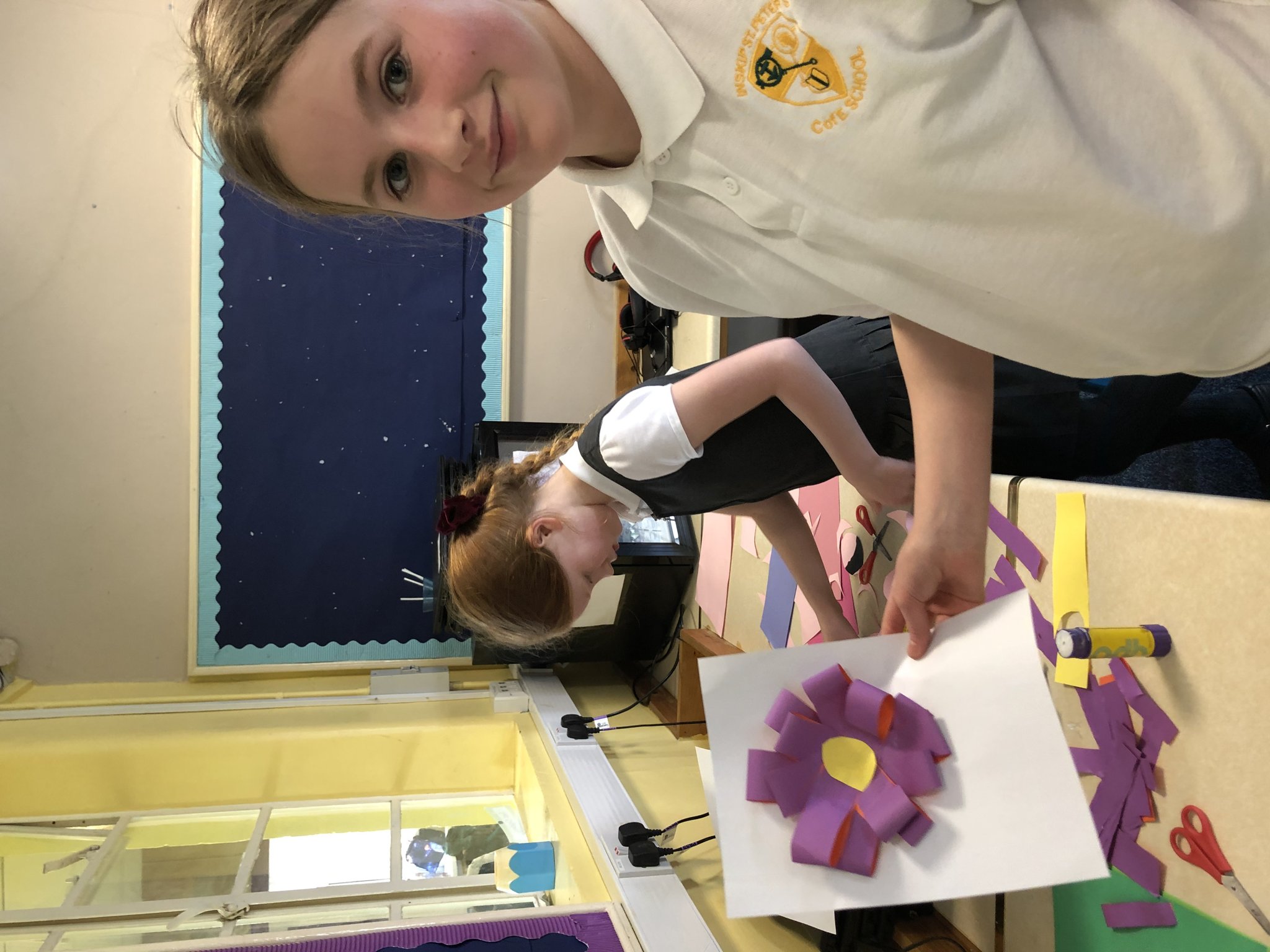 19 March 2021 Jo Hurley Upper School (KS2) Following on from their observational drawings of flowers for Mothering Sunday, the children have been trying to recreate flowers using cutting and folding paper techniques. They have begun to show some great creativity! Spring Flowers