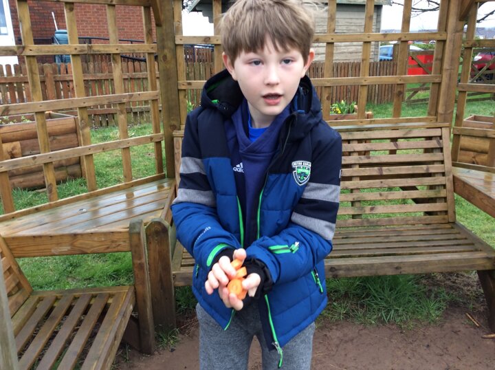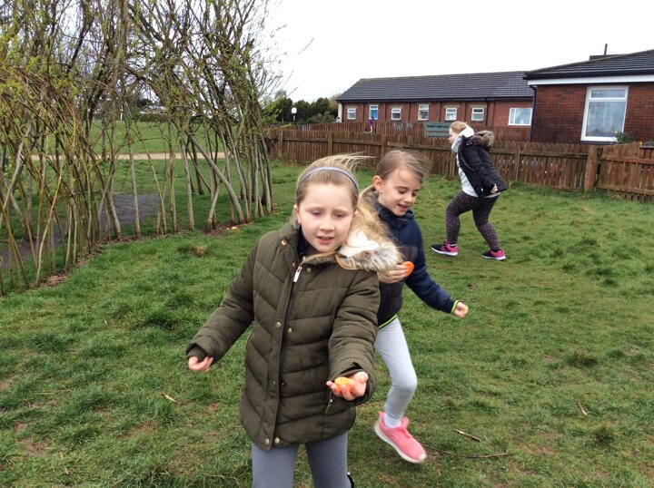 26 March 2021 Bryn Thornton Middle School (MS) Middle school had a fab morning searching for easter carrots.They were so good at finding them that they all ended up with pockets full! The children were thrilled that they could exchange their carrots for 'bunny change' and get an easter egg! Carrot Hunt!