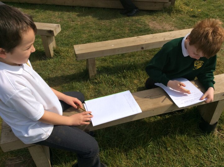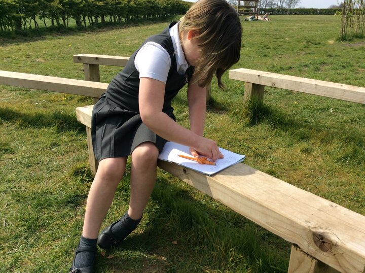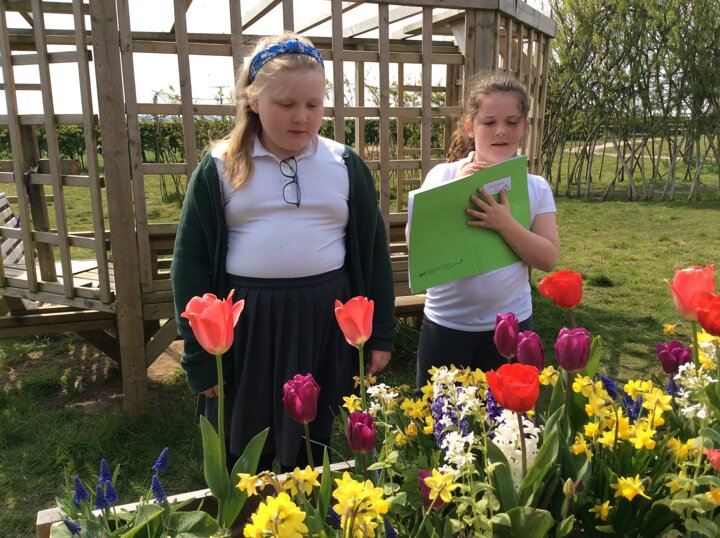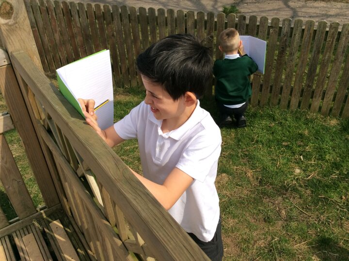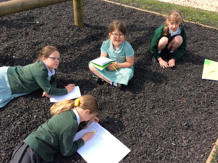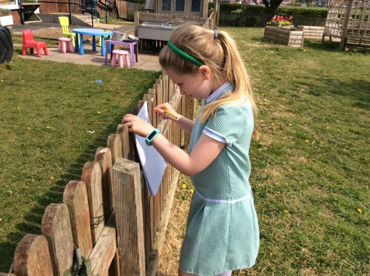 During RE, the children considered the beauty of the world around them and linked this to the creation story. They explored the playground and outdoor areas for things that they found particularly interesting or pretty and wrote about them.