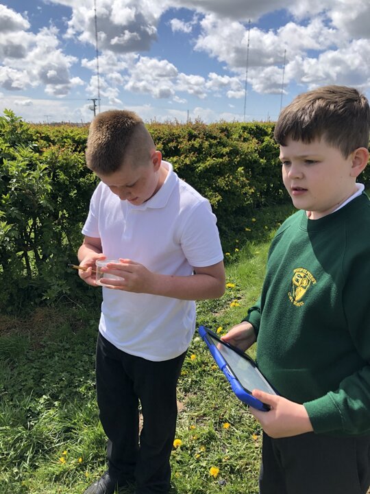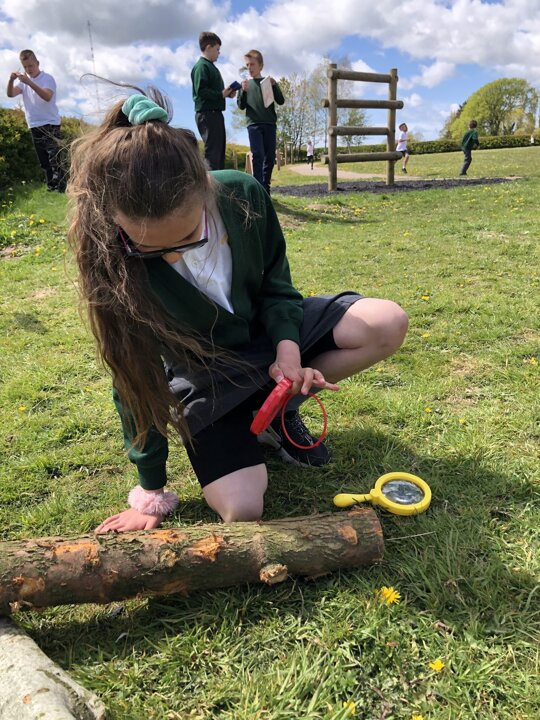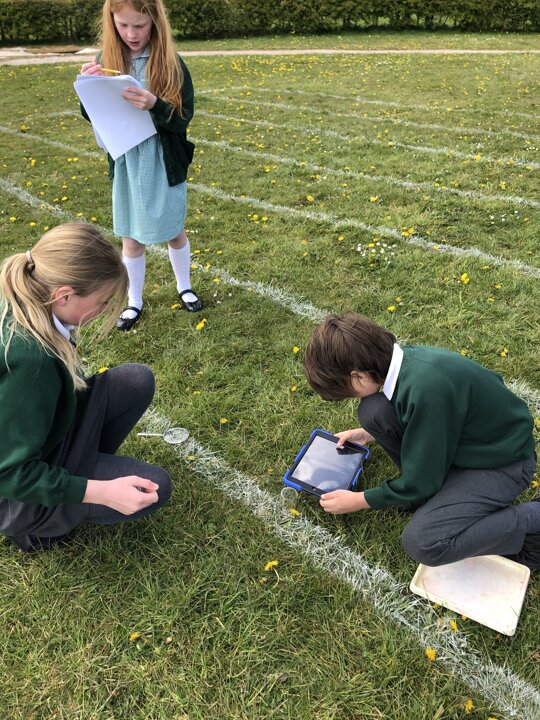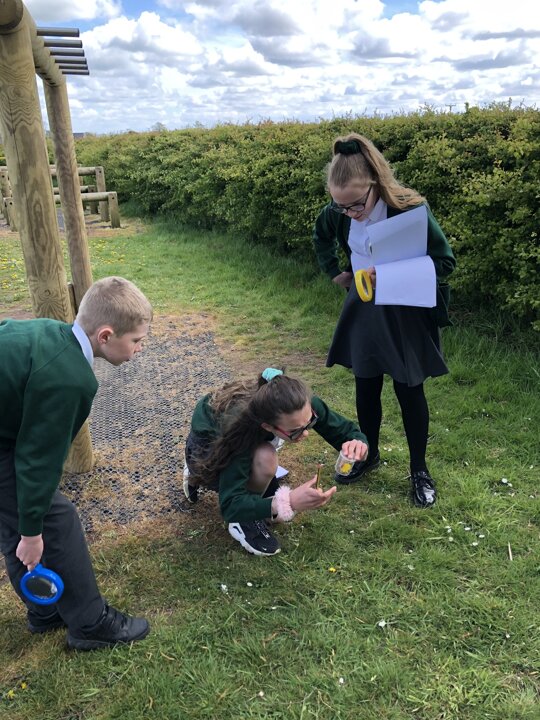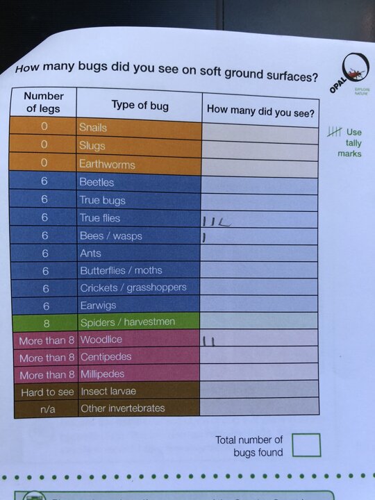 The children worked in groups of three to investigate a particular micro-habitat and used a pocket ID book to work out what sort of invertebrate they had found. There were lots of flies and bees out today! They then tallied their findings on the survey chart.